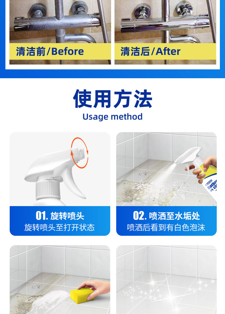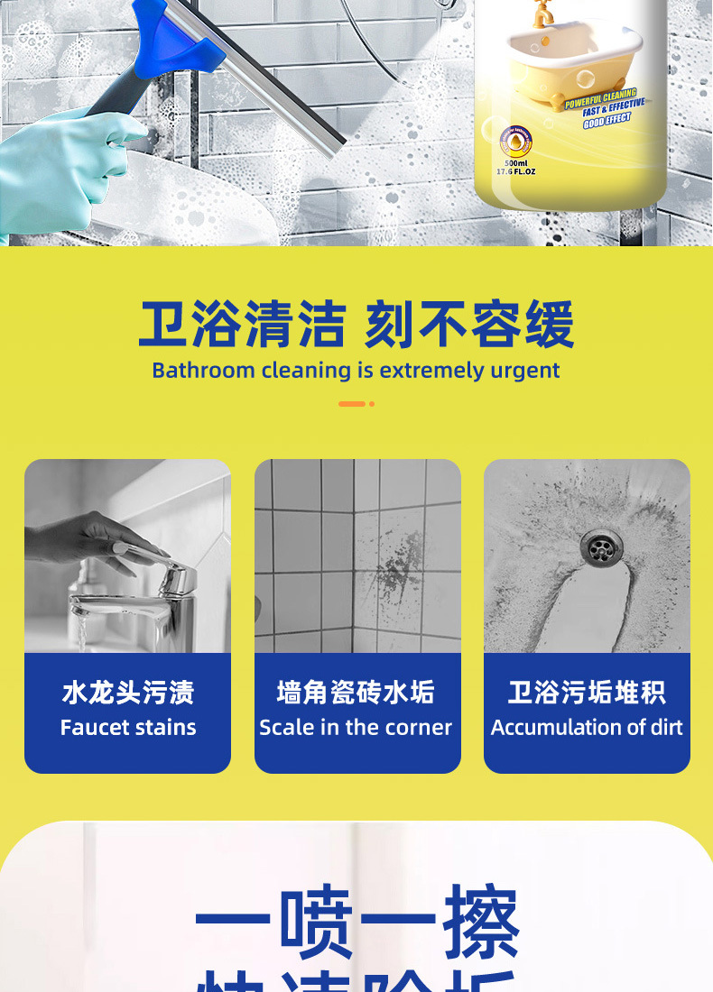 Популярное средство для чистки ванной, удалитель налета с плитки и ванны, многофункциональный очиститель для стекла ванной