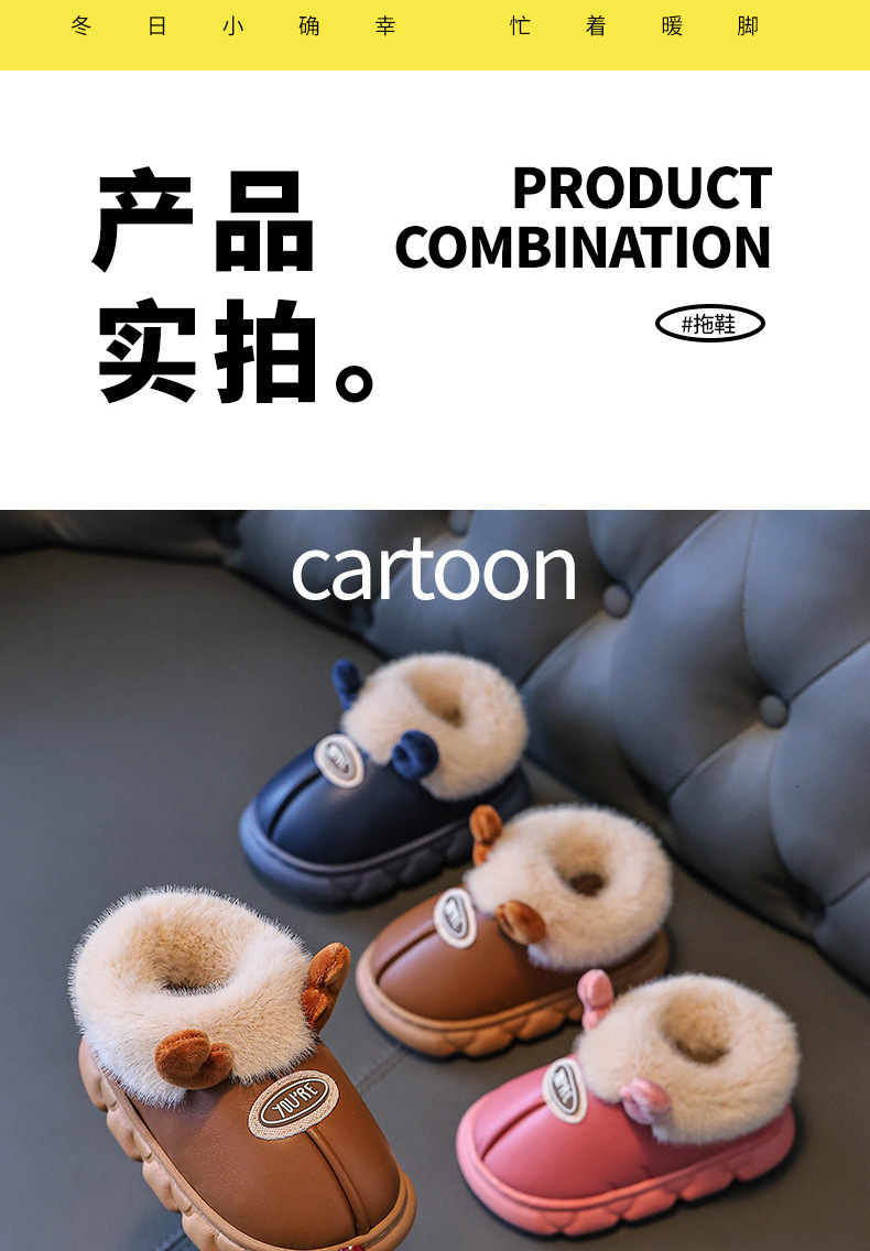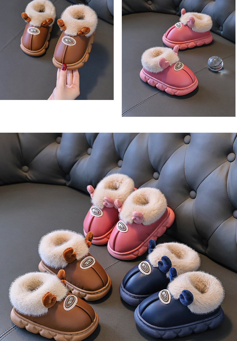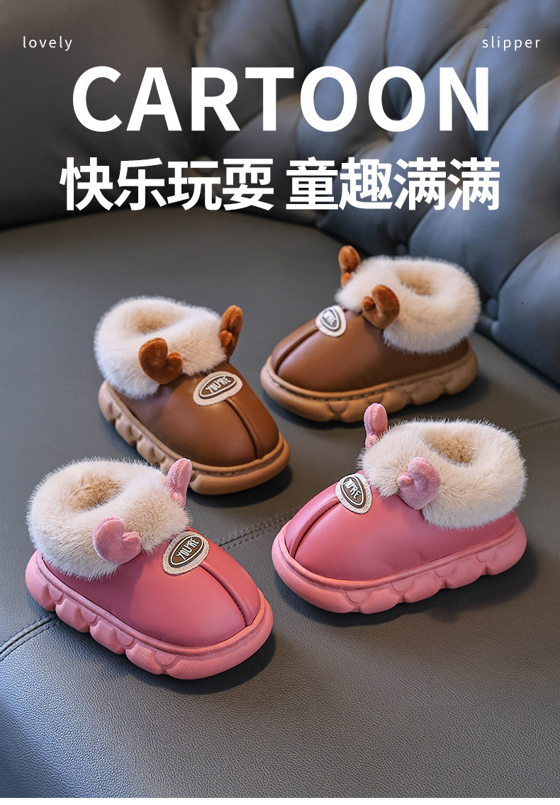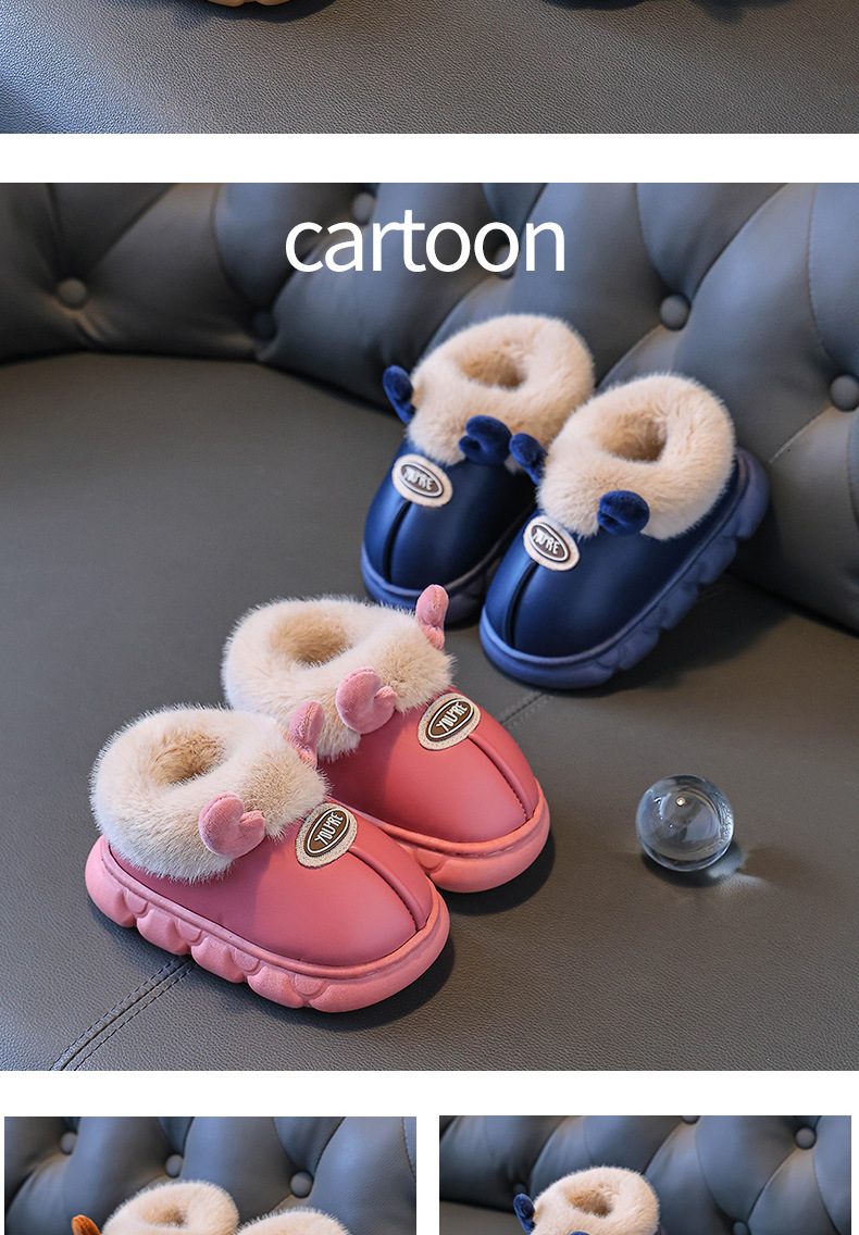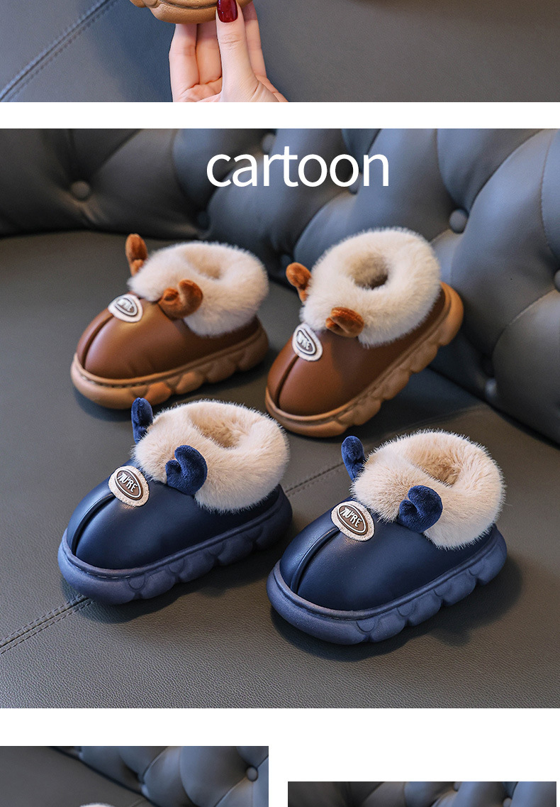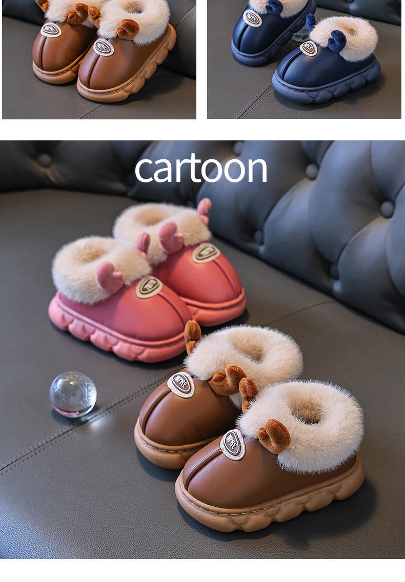 Зимние детские хлопковые туфли 2025 года для мальчиков и девочек, мультяшные, милые, 1-9 лет, домашние, нескользящие, теплые, водонепроницаемые хлопковые тапочки