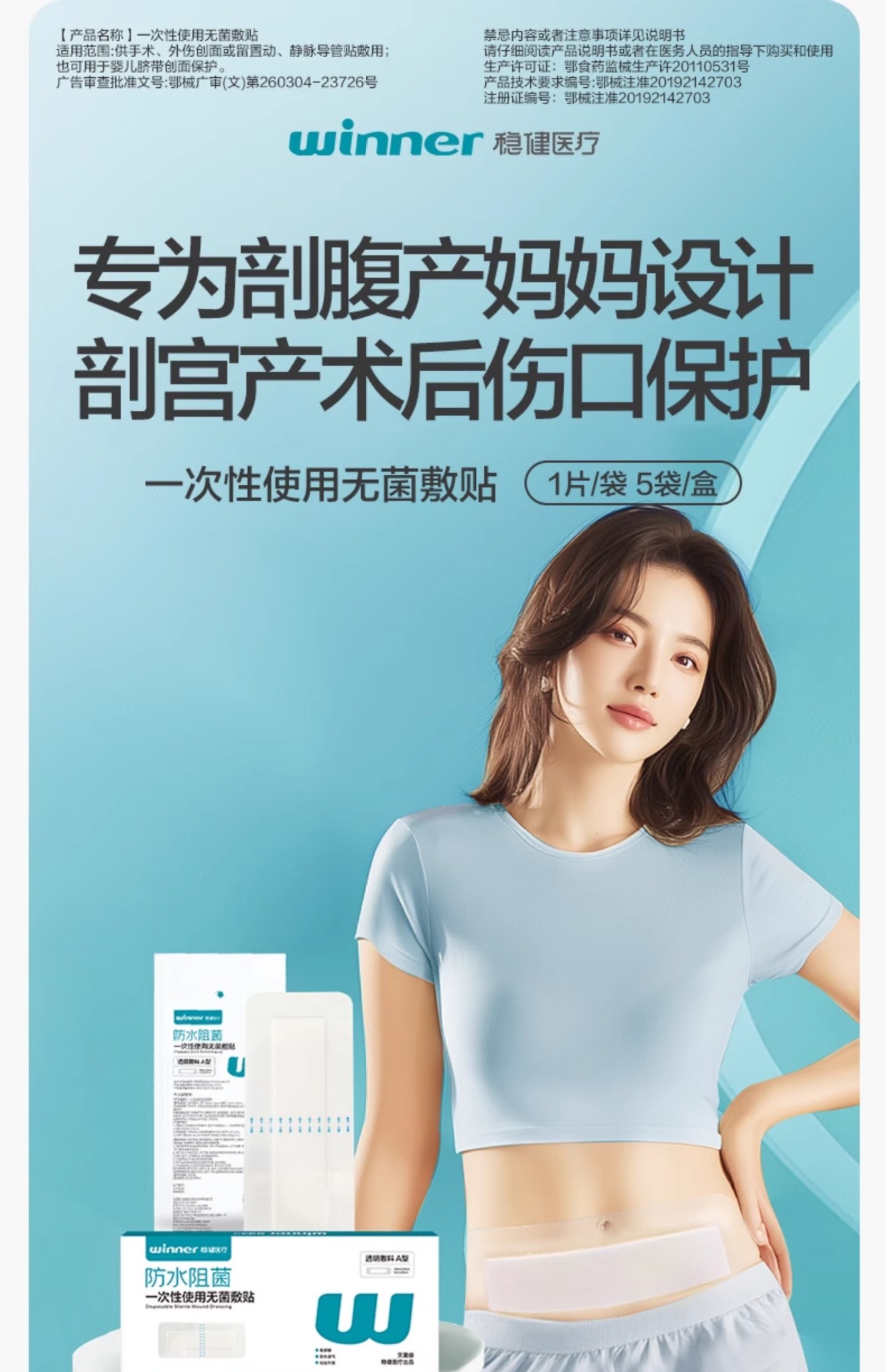 Надежная одноразовая стерильная повязка, водонепроницаемая и антибактериальная, прозрачная повязка типа А, большой кусок пластыря для кесарева сечения