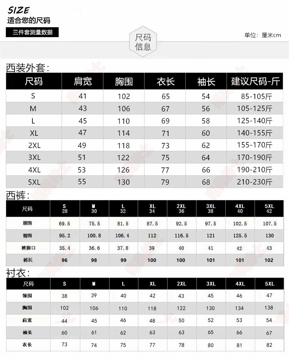 ![]() | Black suit + black trousers + white shirt | Xl code 70-77.5kg | ¥94.98 / ≈ 1 146 ₽ | 9978 | 5927723316789 | |