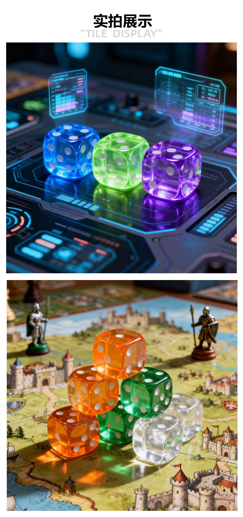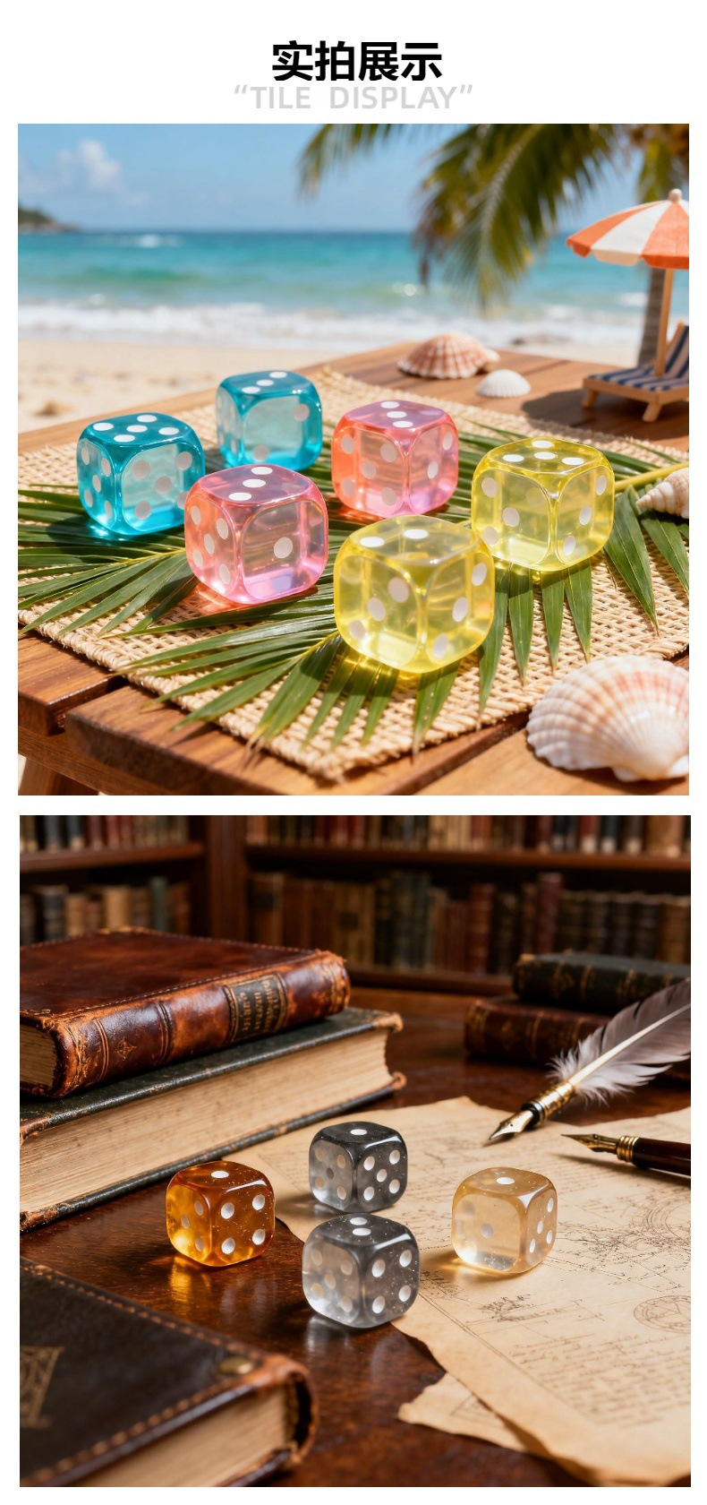 此外,透明骰子常被制作成内有气泡、闪粉或特殊图案的款式,不仅在桌上更显眼,也增加了游戏的视觉趣味和仪式感。在紧张的剧情中,摇出一枚晶莹剔透的骰子,既有随机性带来的刺激,也能让玩家更沉浸在角色扮演的氛围里。