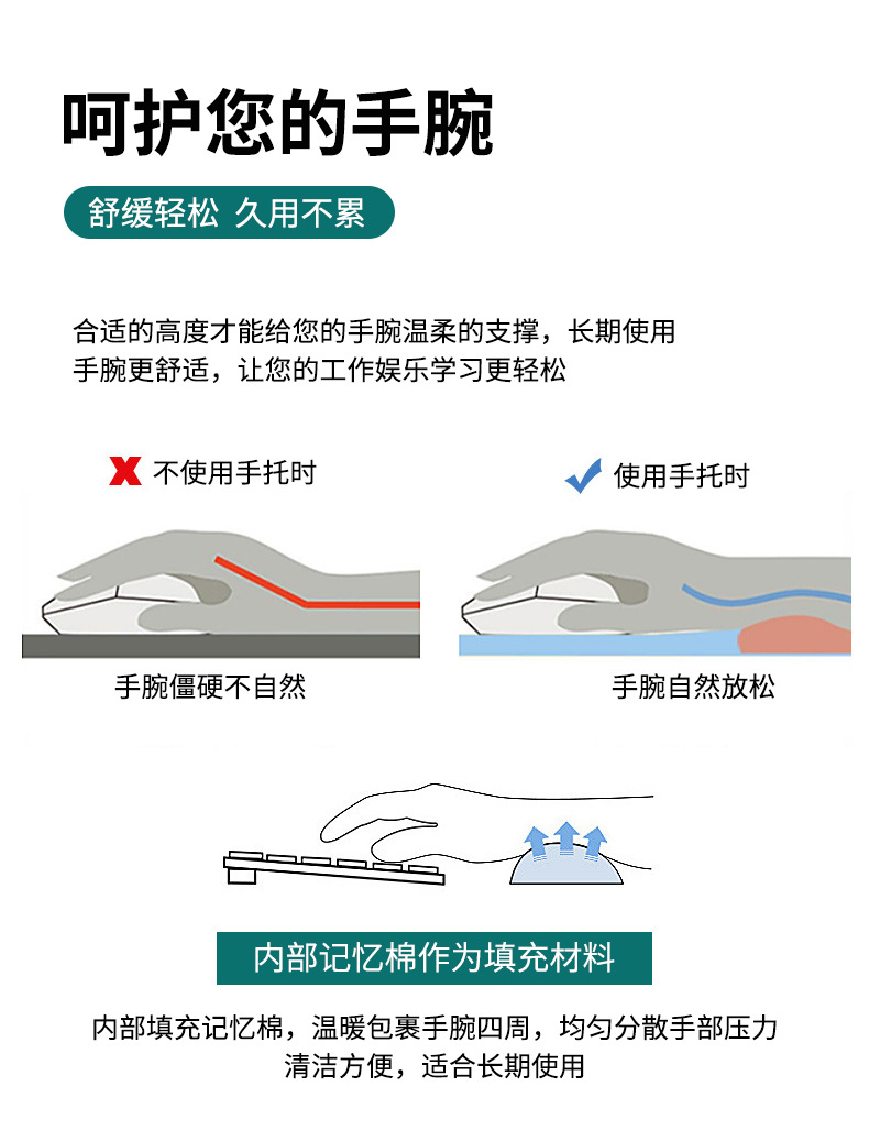 桌面舒适掌托护腕机械键盘手托 硅胶手腕托记忆棉键盘手托护腕垫