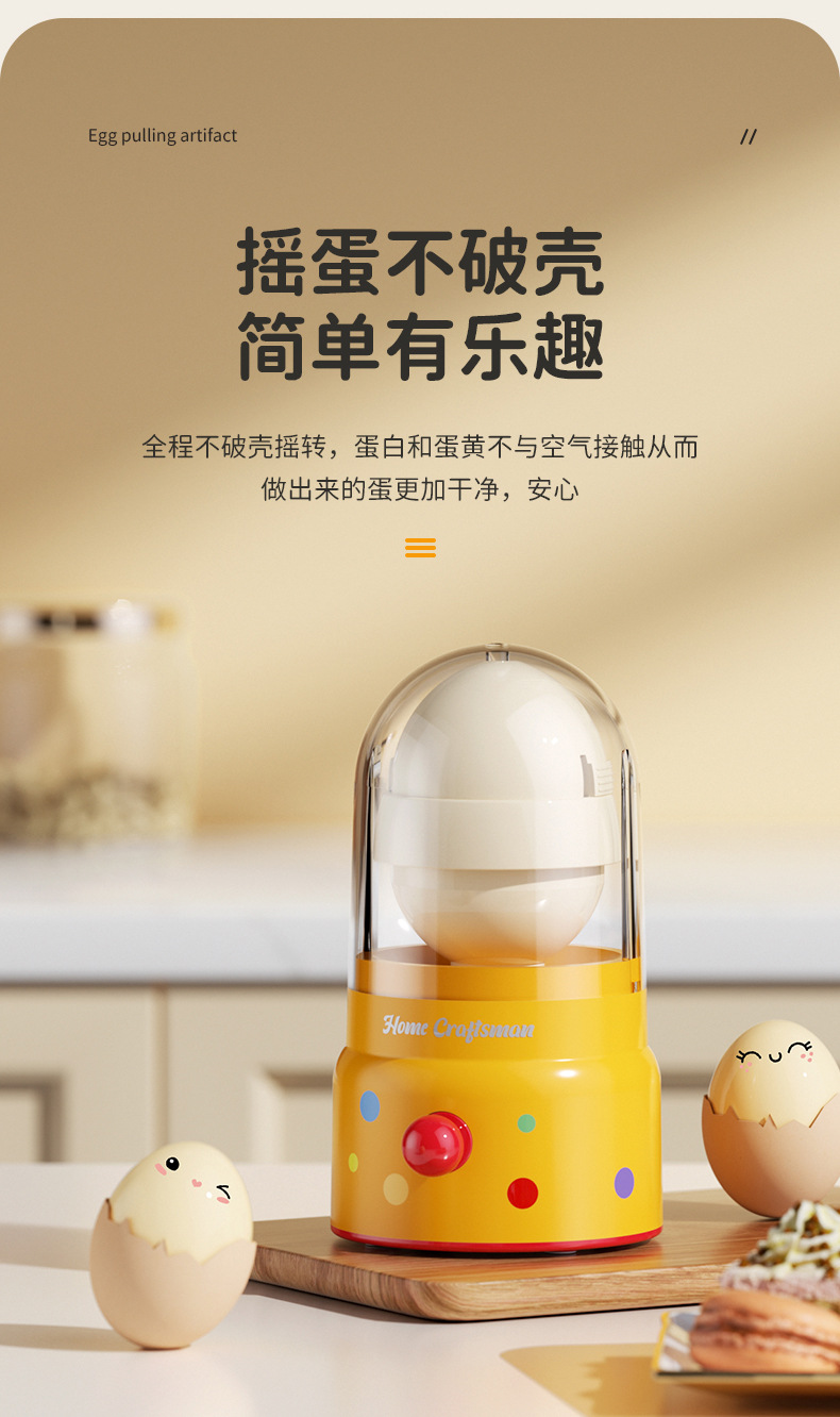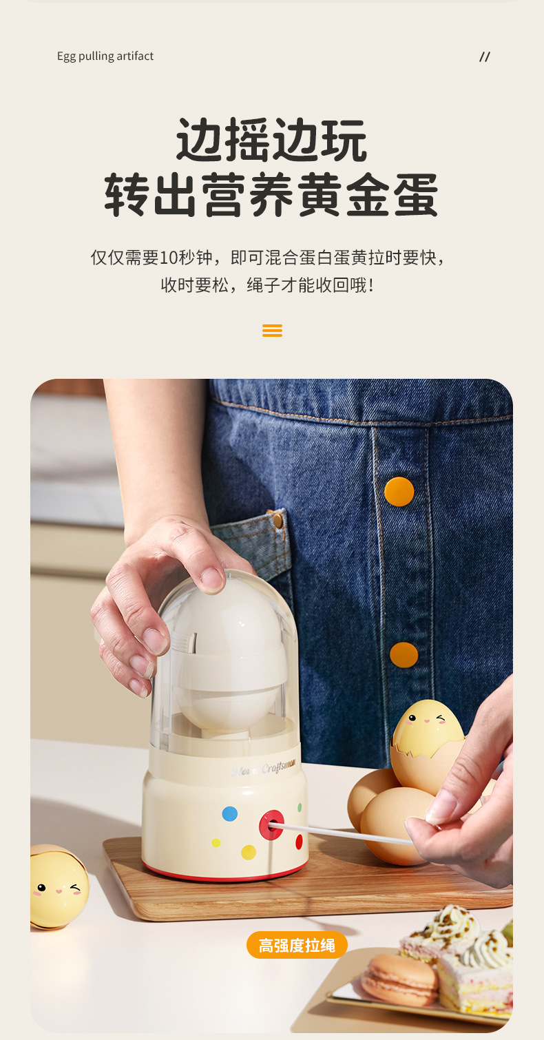 商品名称:趣味黄金蛋加高底座摇蛋器手动拉蛋器厨房透明带盖不碎壳摇蛋工具