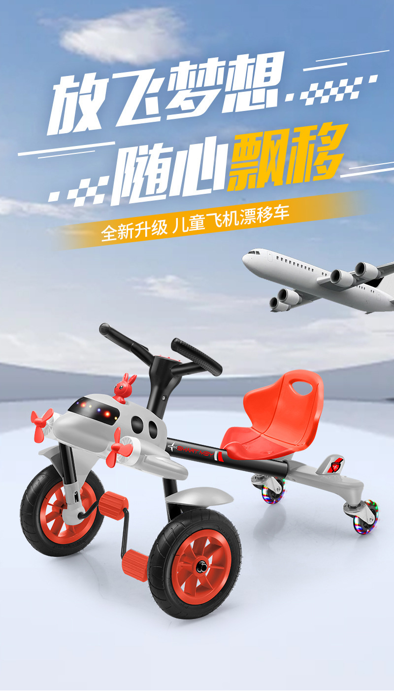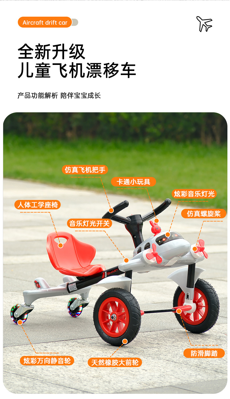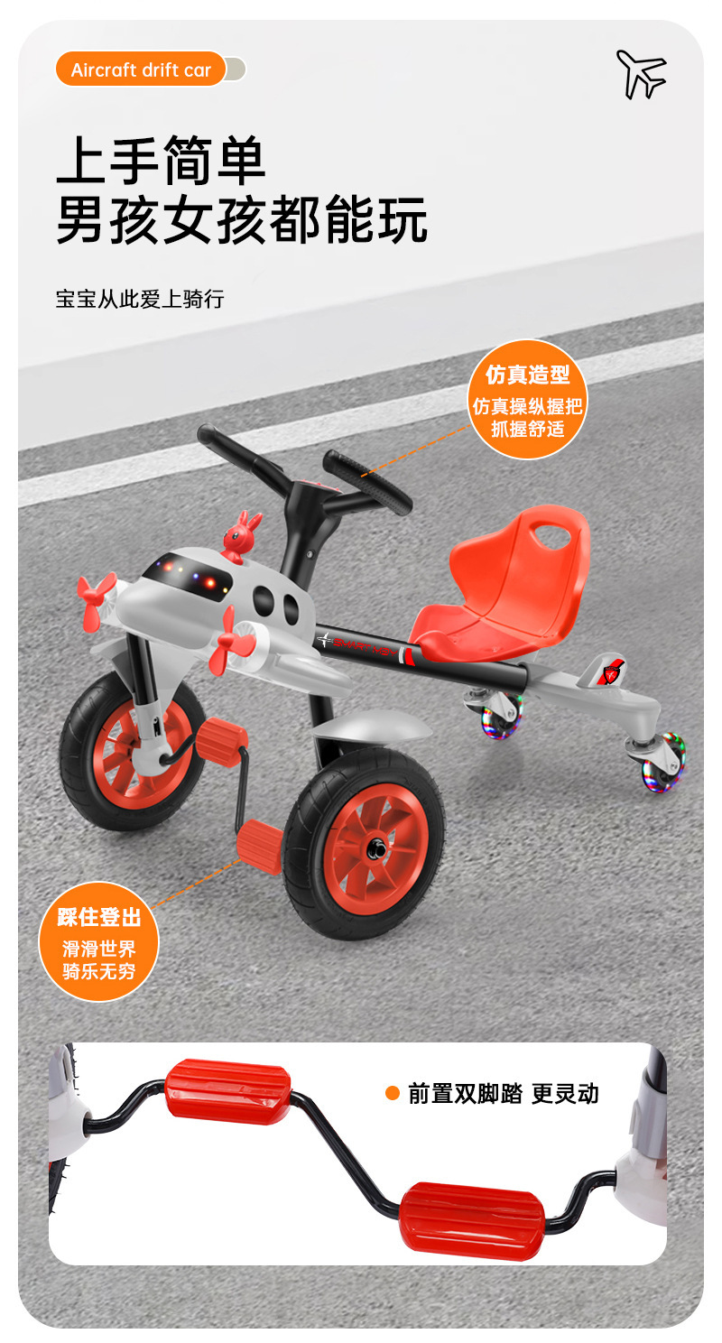 Детский дрифт-кар, маленький самолет, четырехколесный велосипед, трехколесный велосипед, катящийся самокат, квадратная игрушка, детская коляска