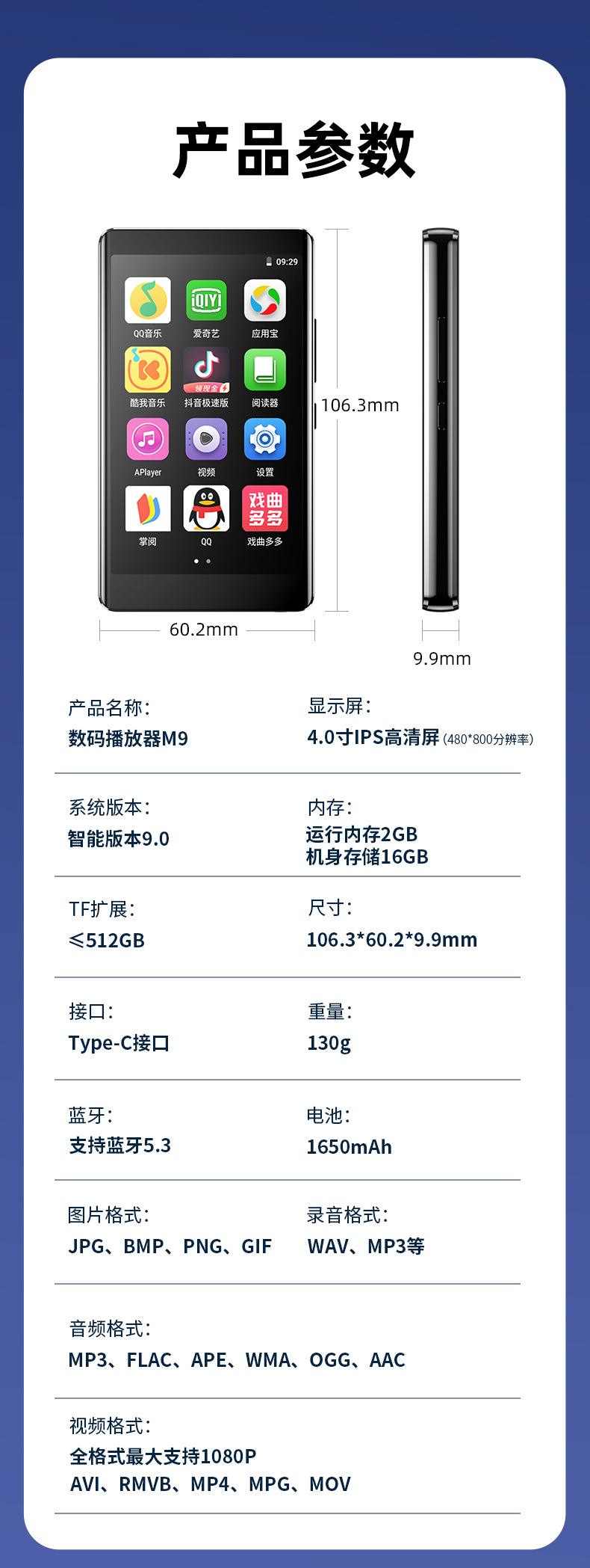 M9 кросс-бордерная электронная коммерция 4.0 дюйма MP3 MP4 полный экран Walkman версия для студентов для чтения романов, электронных книг и прослушивания песен