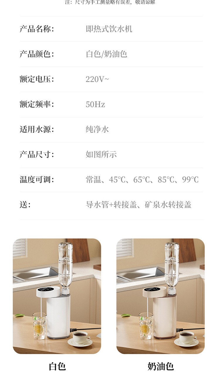 产品清单:产品*1 导水管*1(1.2米) 转接盖*1 矿泉水转接盖*1 连接插头电线*1(760cm) 收纳袋*1 说明书*1(中单独/16国单独)