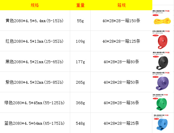 ![]() | Green tpe2080*4.5*45mm (55-125lb) handle + door buckle + carabiner | ¥15.5 / ≈ 187 ₽ | 99999 | 5976194612276 | |