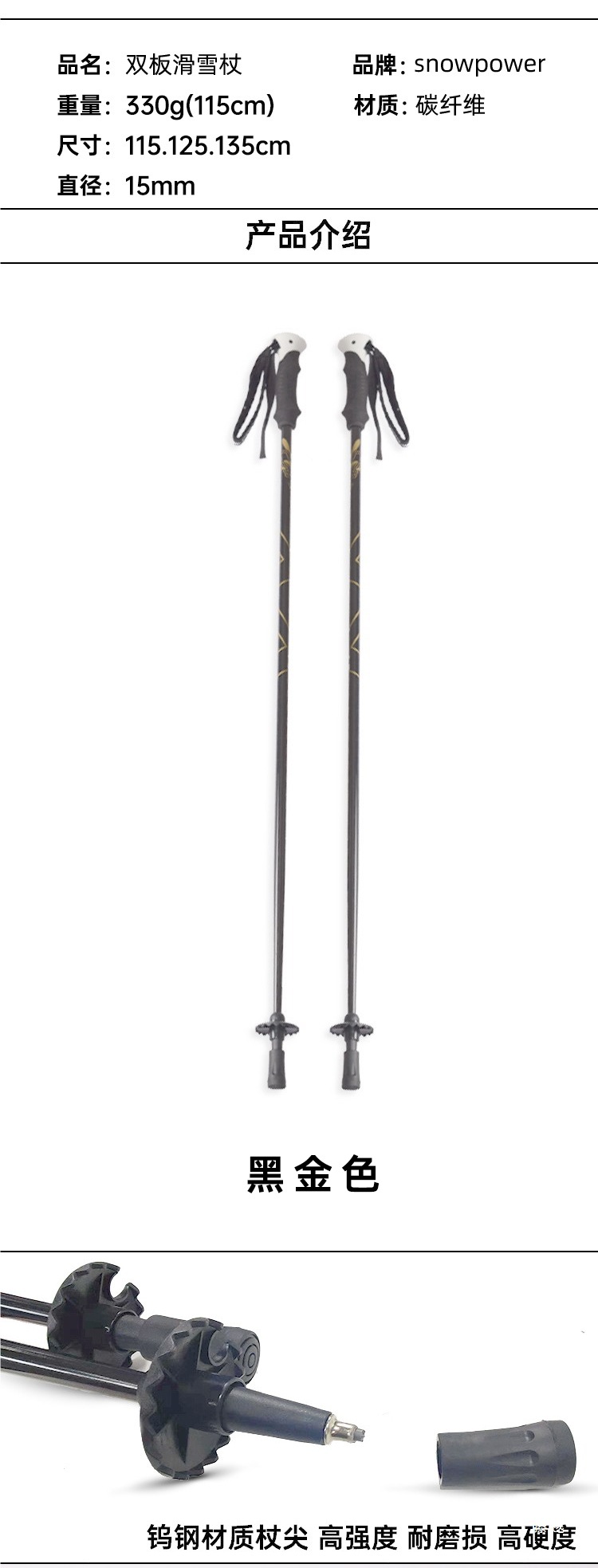 Лыжные палки Snow Power из углеродного волокна, двойные лыжные палки, полностью углеродные легкие палки 105/115/125