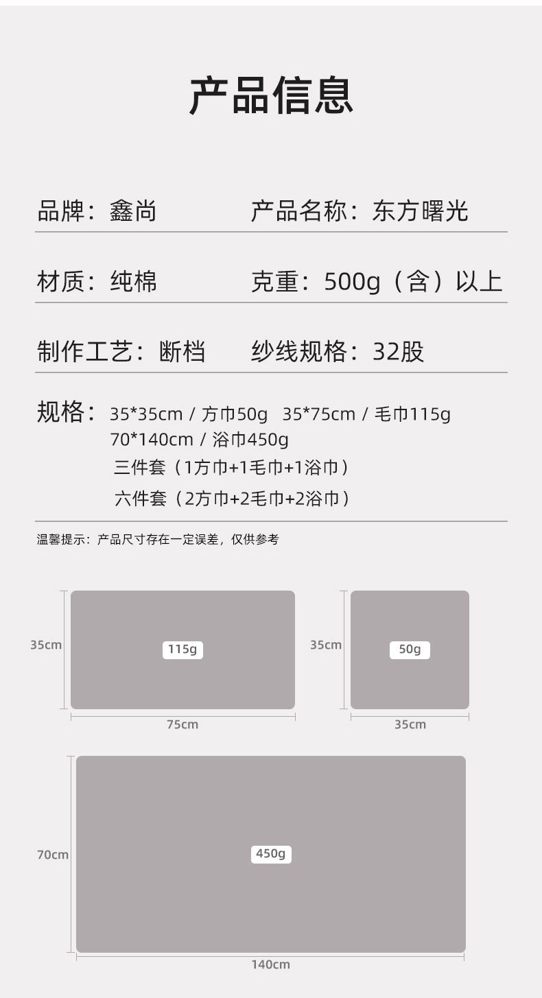 ![]() | Purple | Six-piece set (2 square towels + 2 towels + 2 bath towels) | ¥65.0 / ≈ 783 ₽ | 10000 | 5930843721137 | |