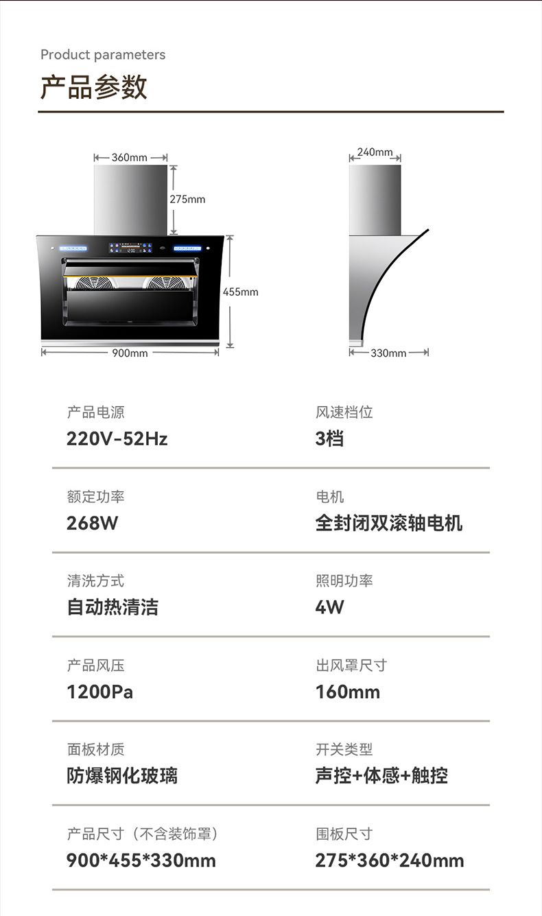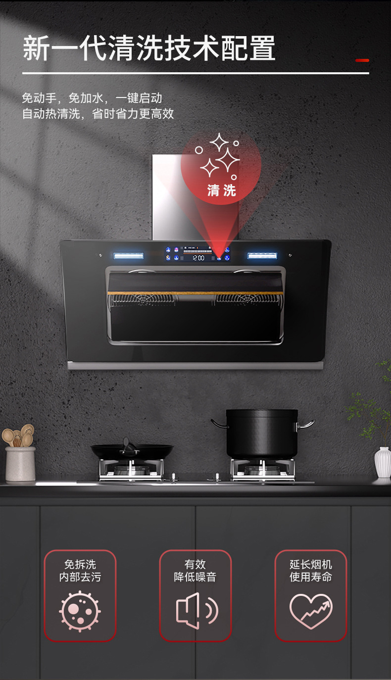 Вытяжка Meikang Haotaitai с боковым всасыванием, автоматическая очистка, вытяжка для домашней кухни с высокой мощностью всасывания