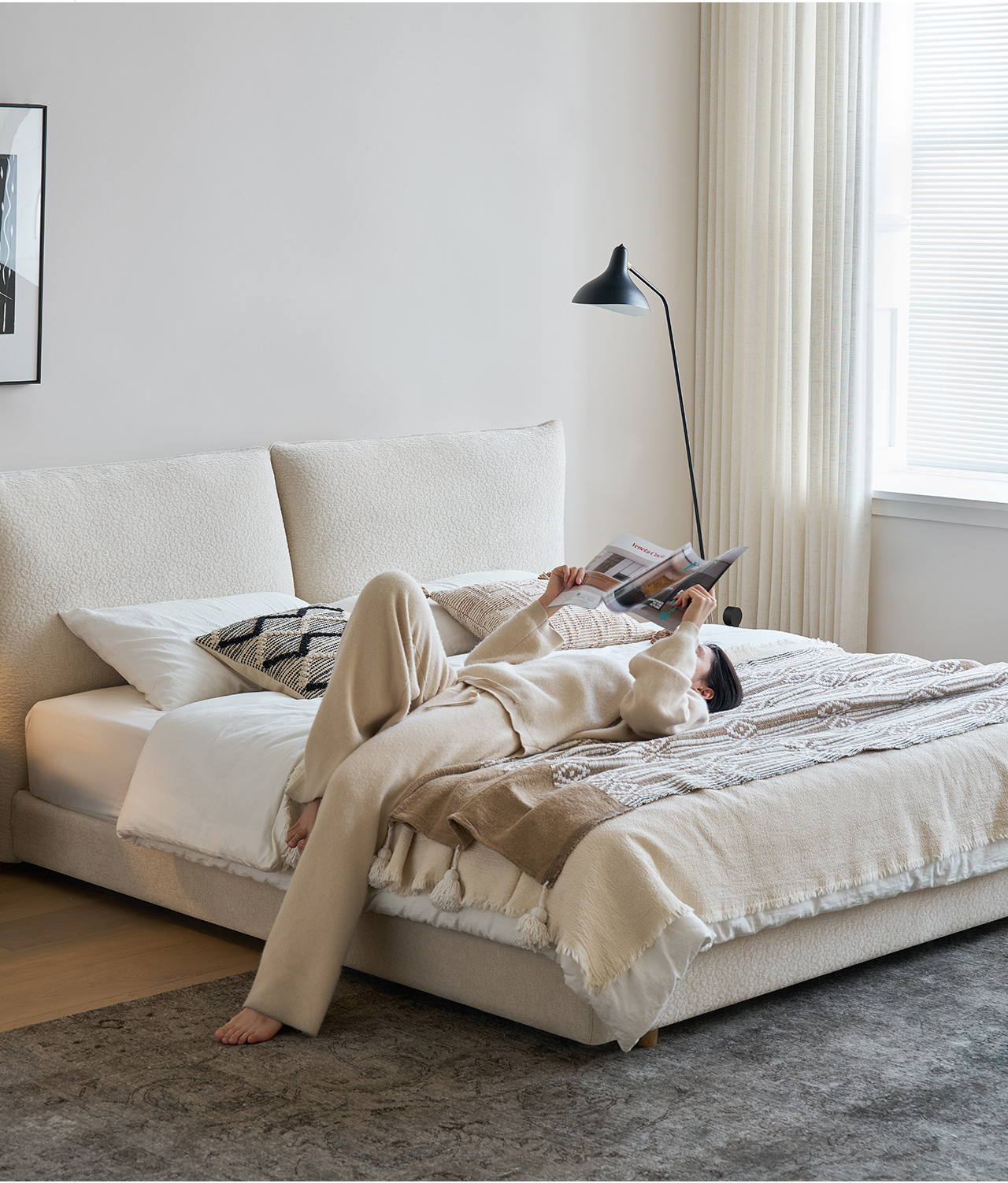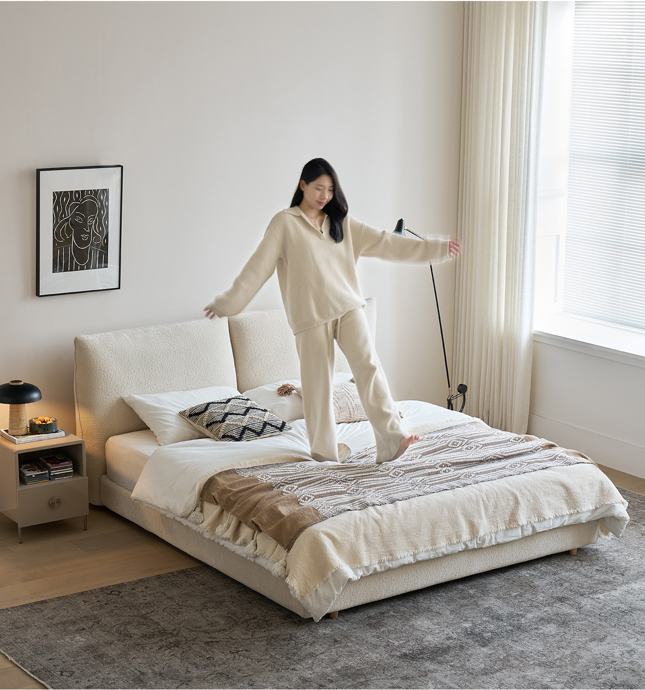 Кремовая тыквенная кровать, французская шенилловая двойная кровать для дома, современная минималистская большая кровать 1.8 м