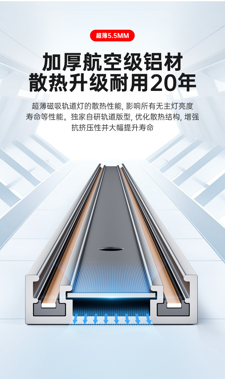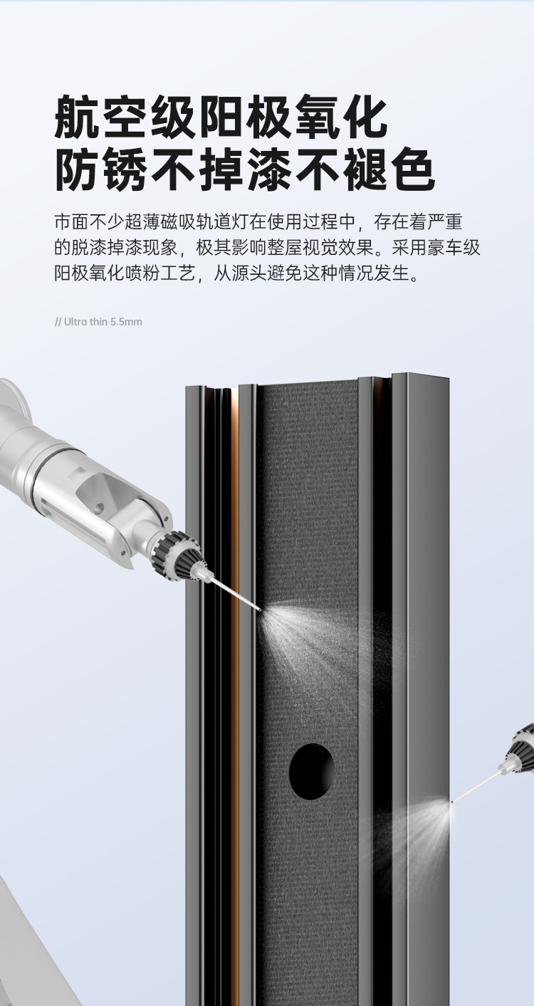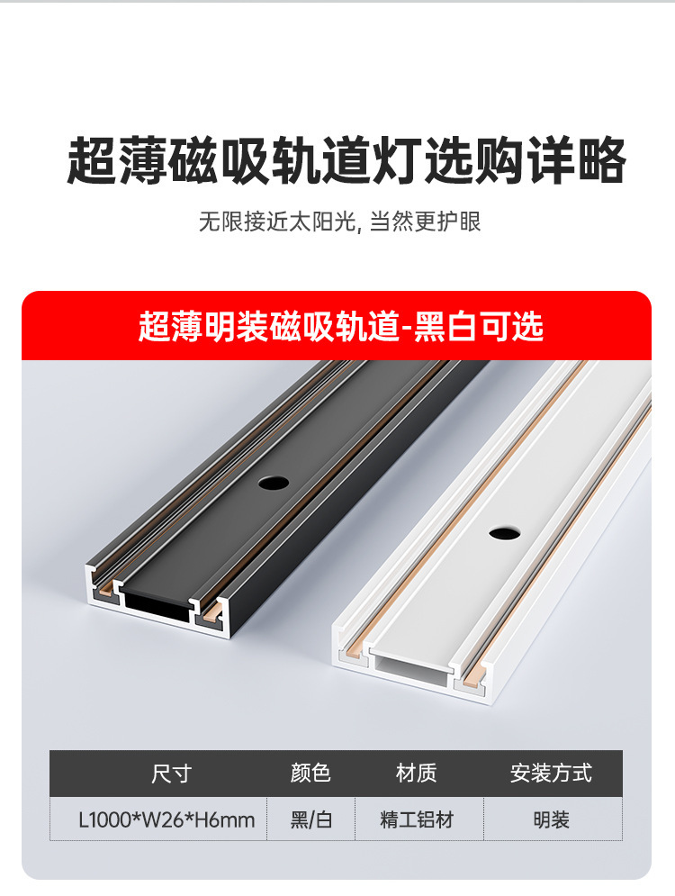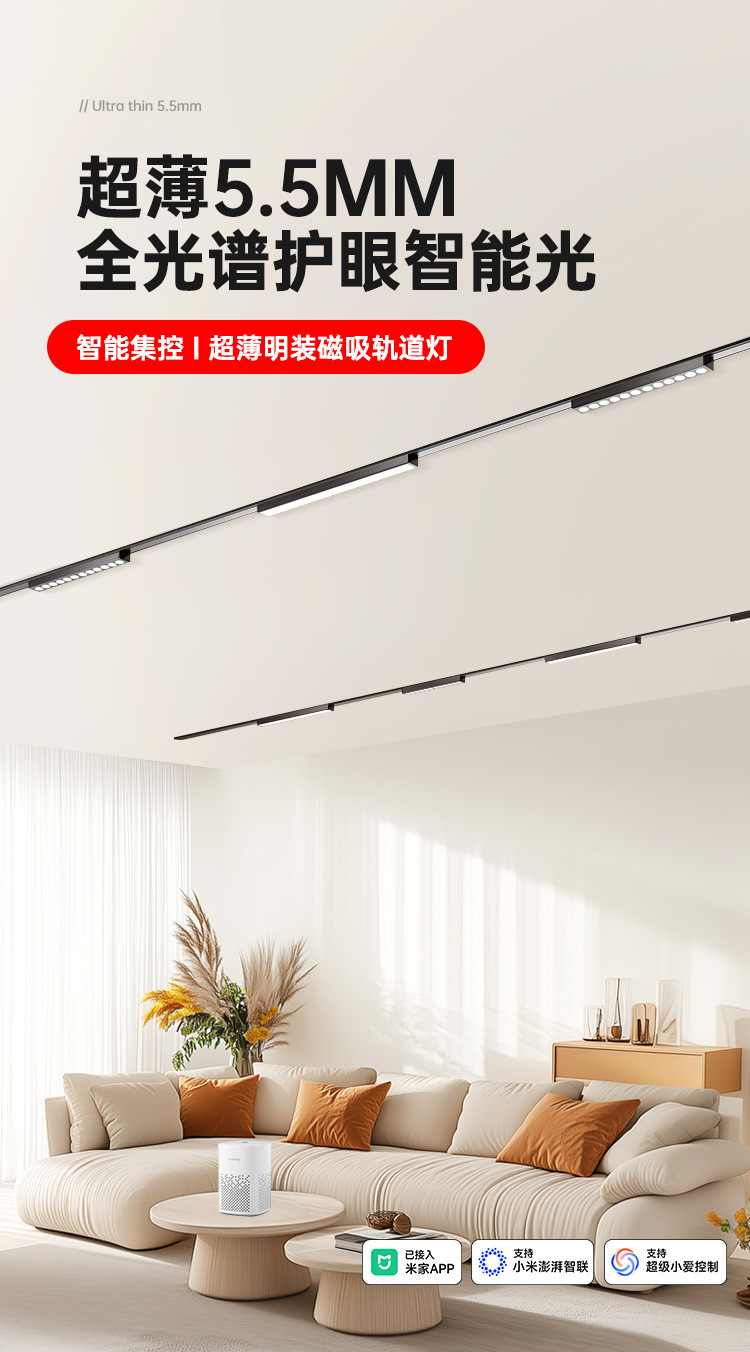 超薄磁吸轨道灯5.5mm宽免吊顶客厅家用明装全光谱智能led轨道射灯