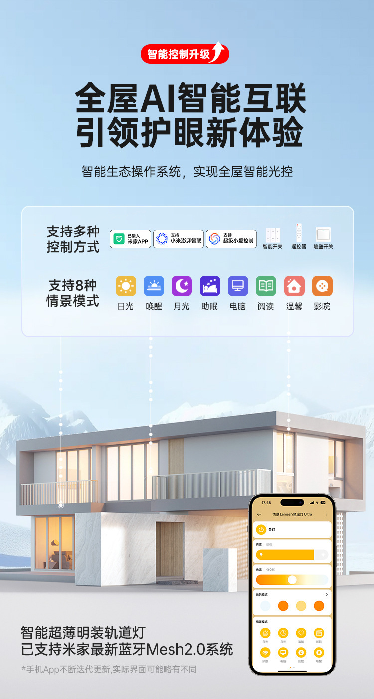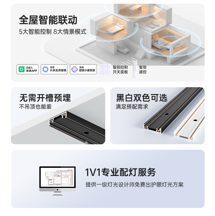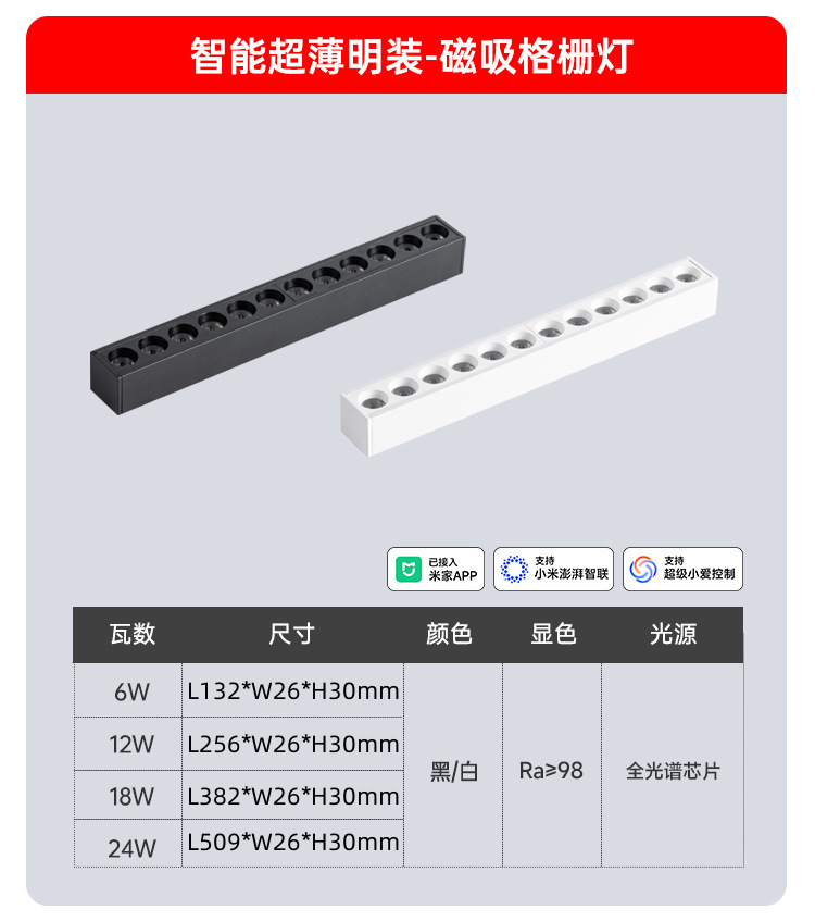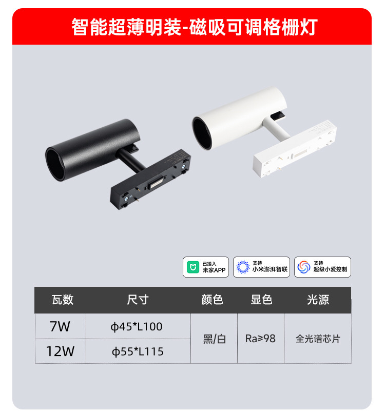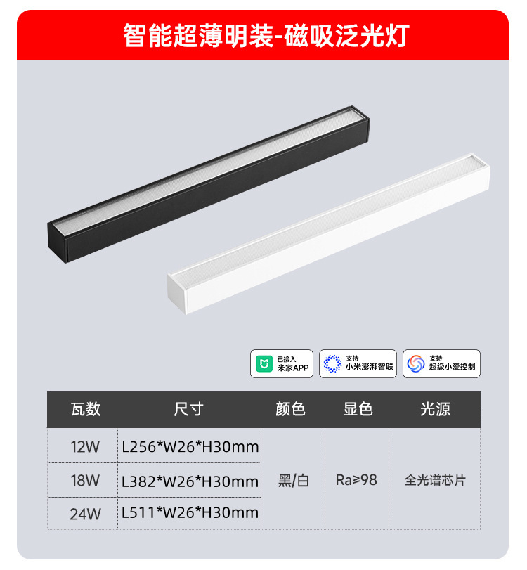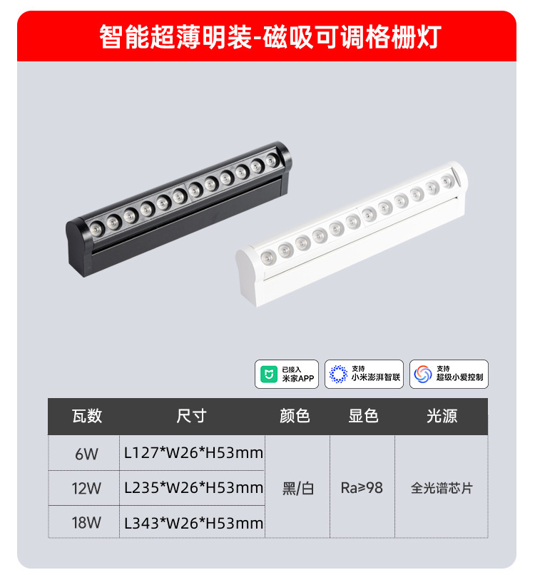 超薄磁吸轨道灯5.5mm宽免吊顶客厅家用明装全光谱智能led轨道射灯