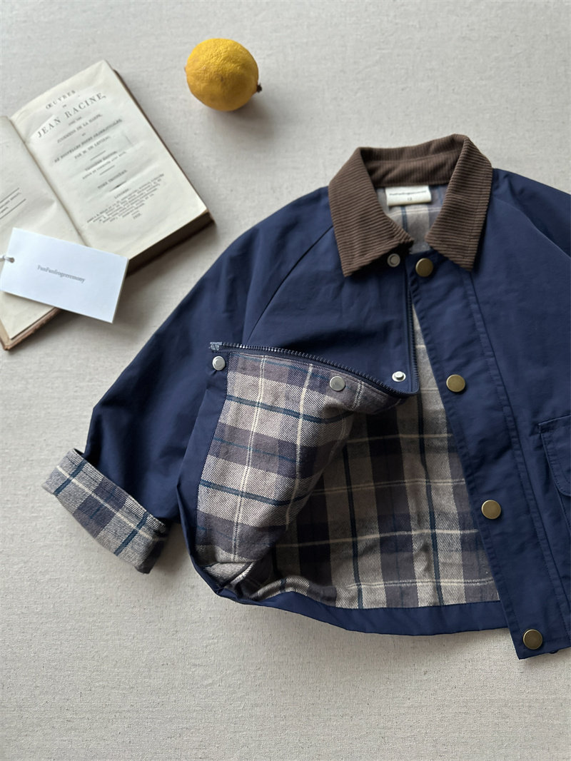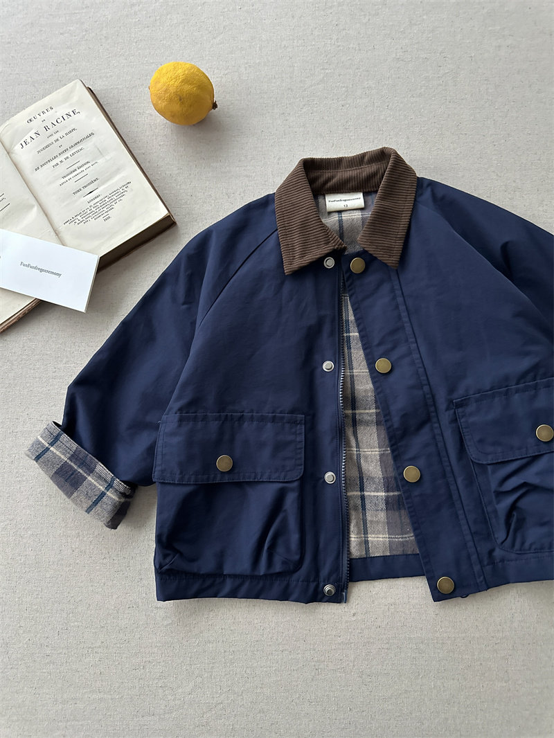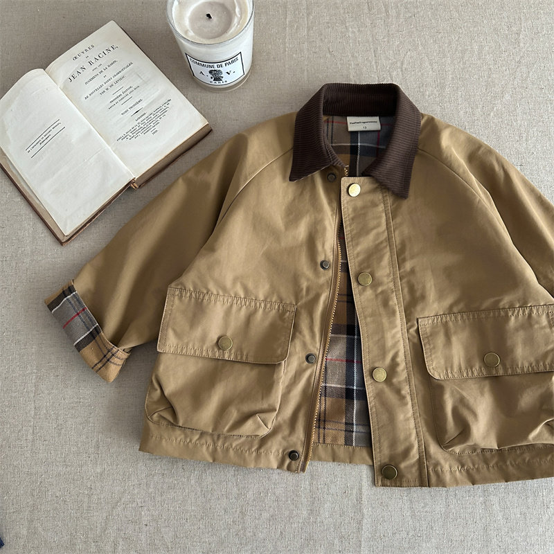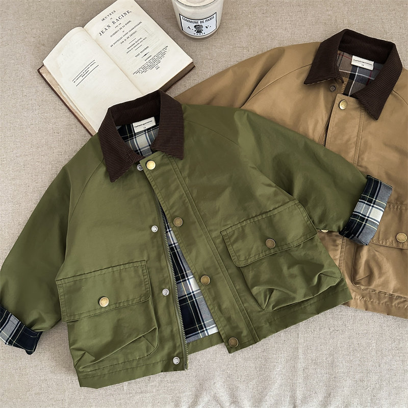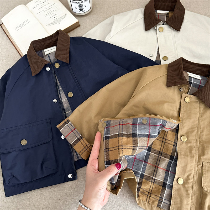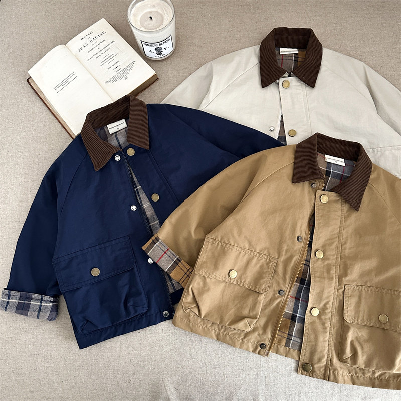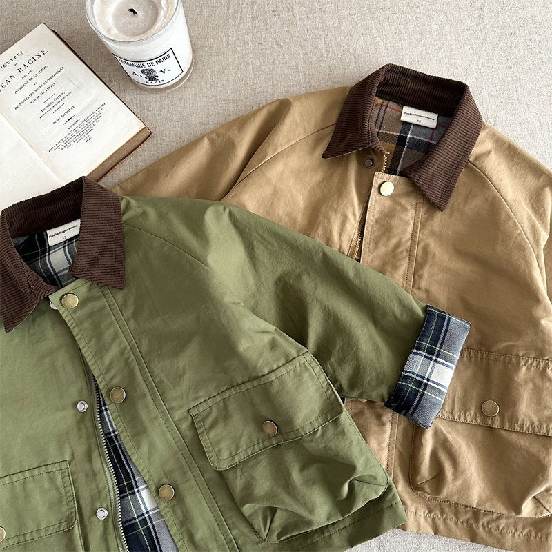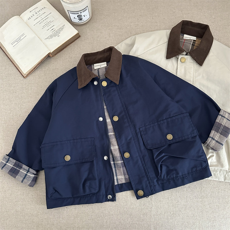 Детская весенне-осенняя куртка для мальчиков, японский стиль, модная клетчатая куртка, стильное осеннее пальто для малышей, детская одежда
