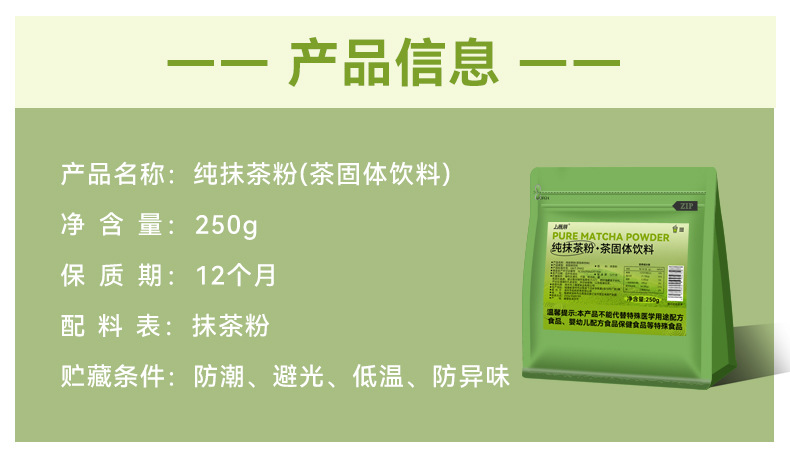 ![]() | [pure matcha powder] 250g*1 bag | ¥45.8 / ≈ 553 ₽ | 21518 | 6095334395394 | |
