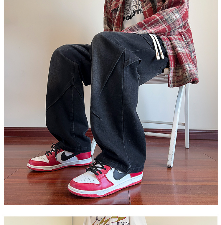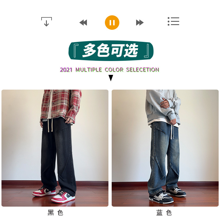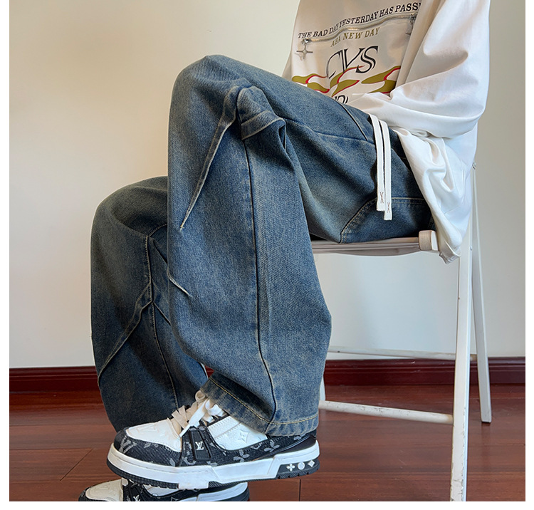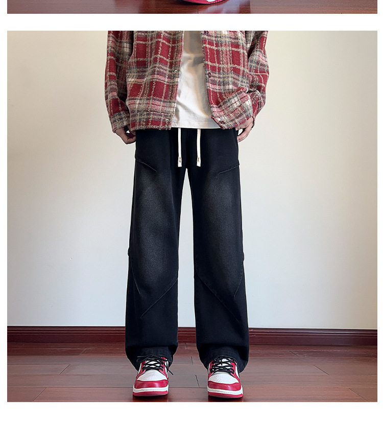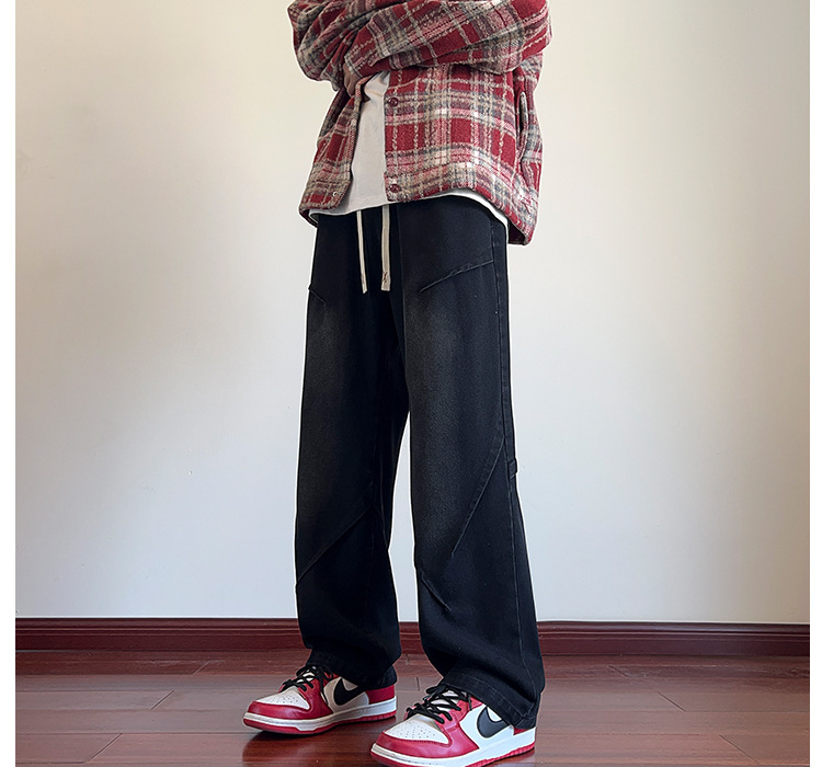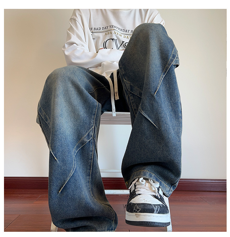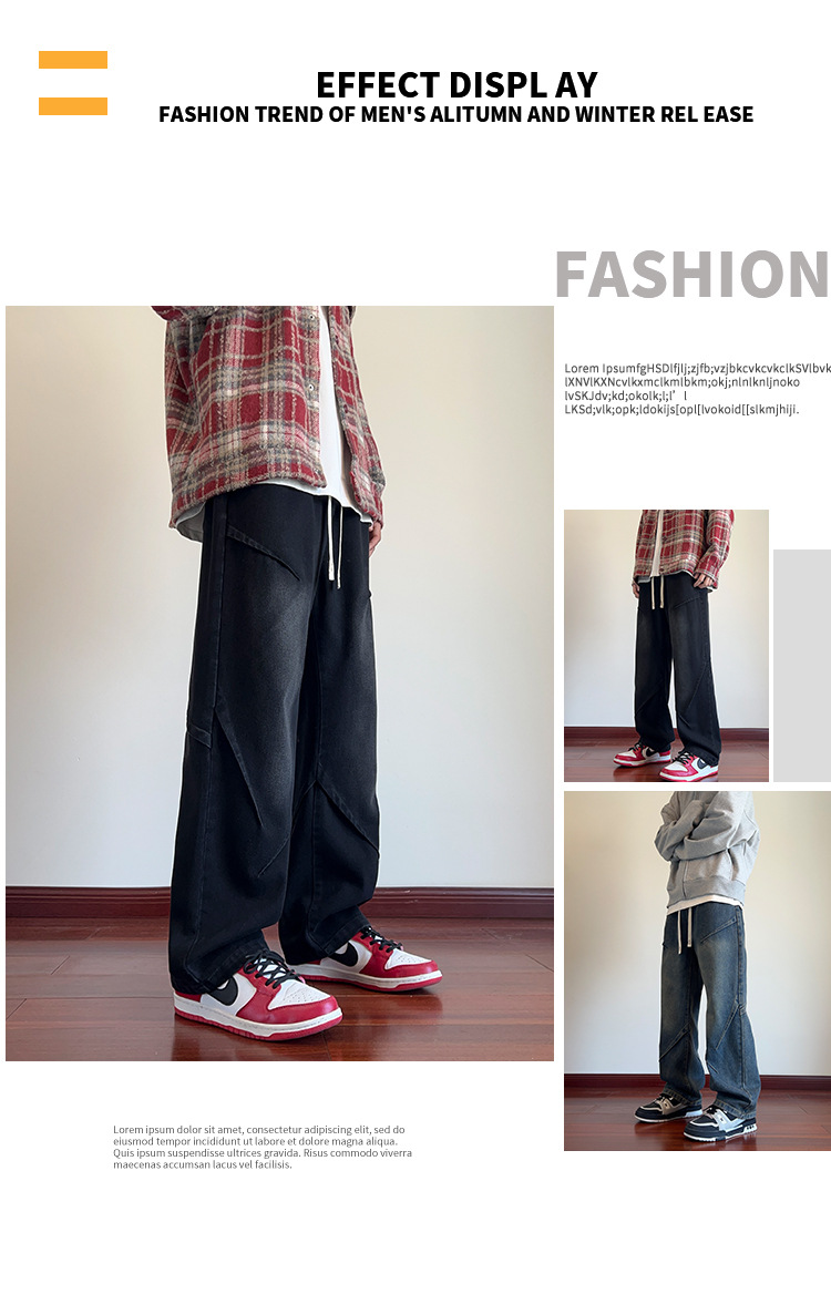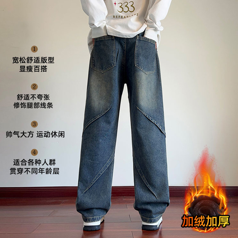 Зимние джинсы с флисовой подкладкой для мужчин, прямые, повседневные, свободные брюки, широкие брюки, джинсы для мужчин в стиле хай-стрит