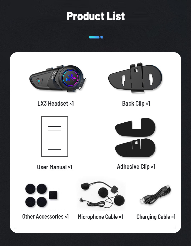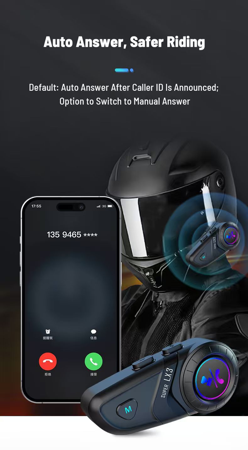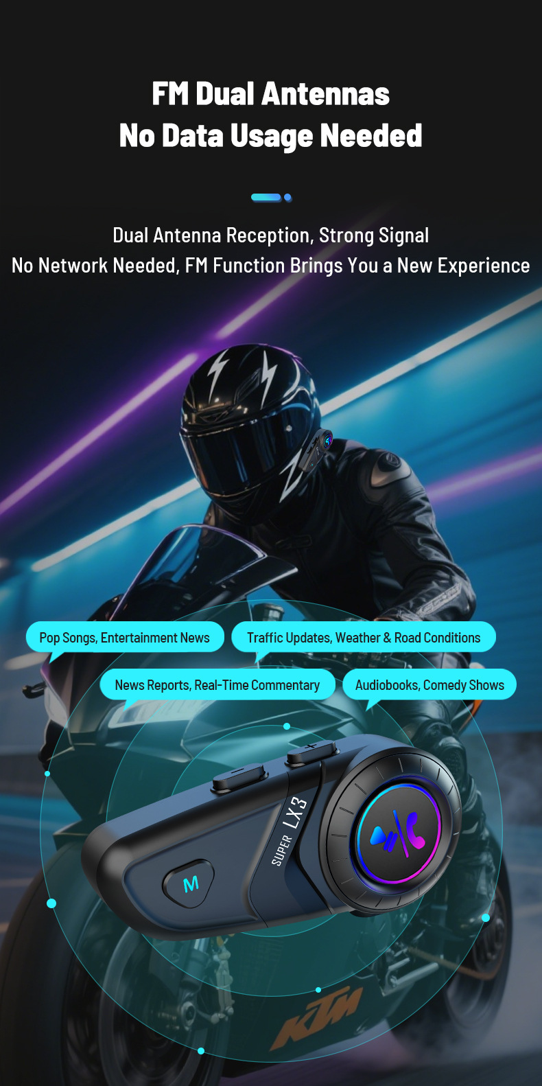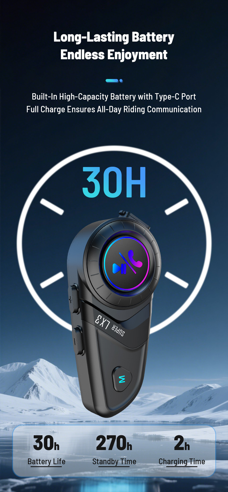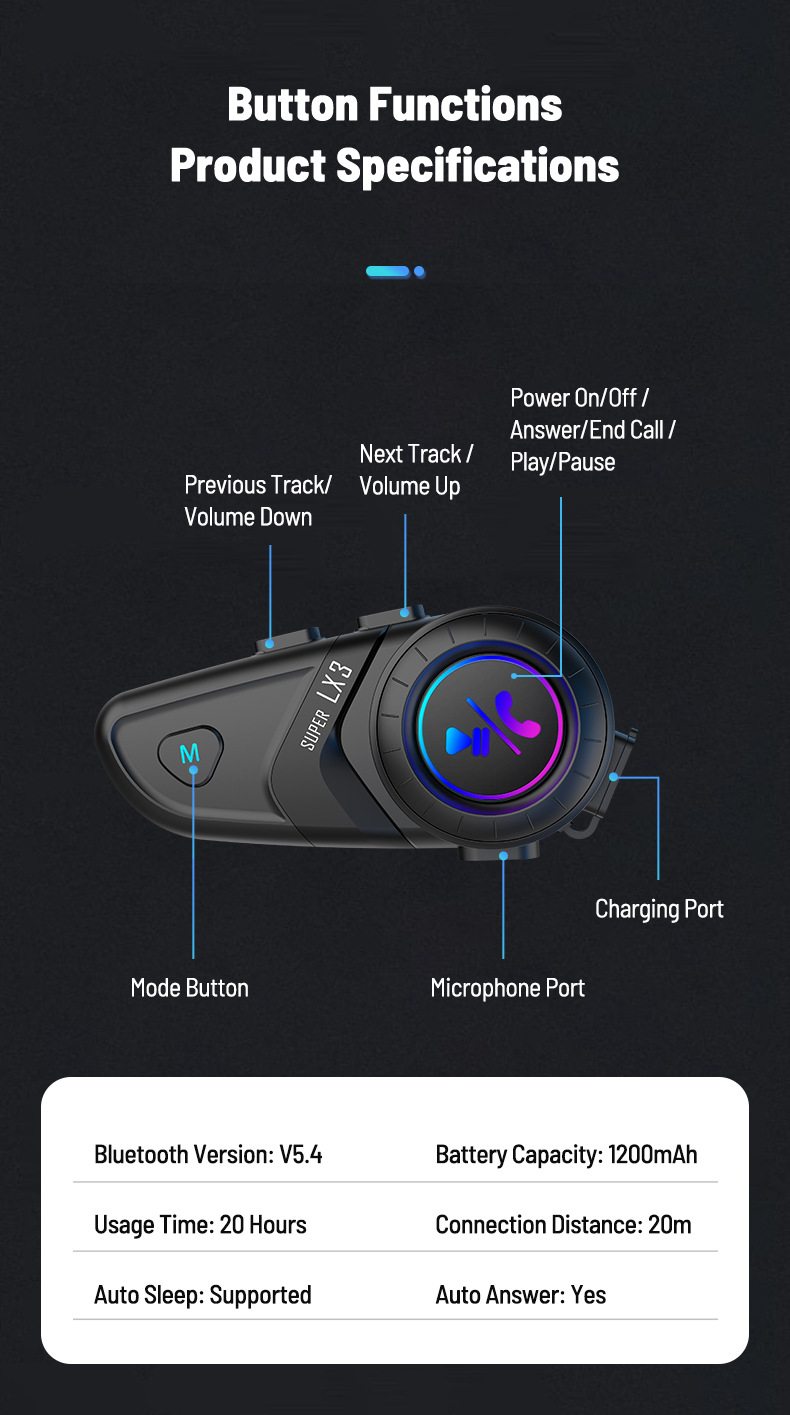 Обновленная беспроводная гарнитура Lx3 для мотоциклетного шлема, водонепроницаемая, Bluetooth 5.4