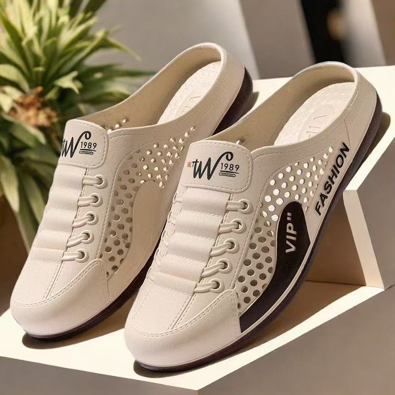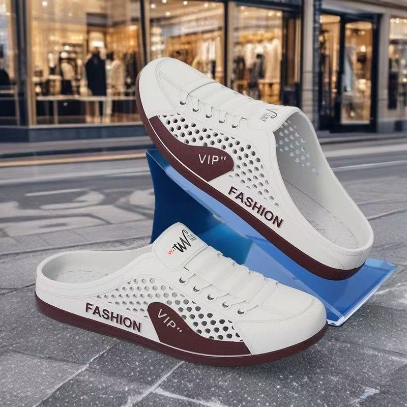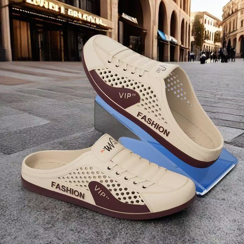 Модные слипоны 2025 года, полукруглые туфли для мужчин, открытые кроксы для пляжа