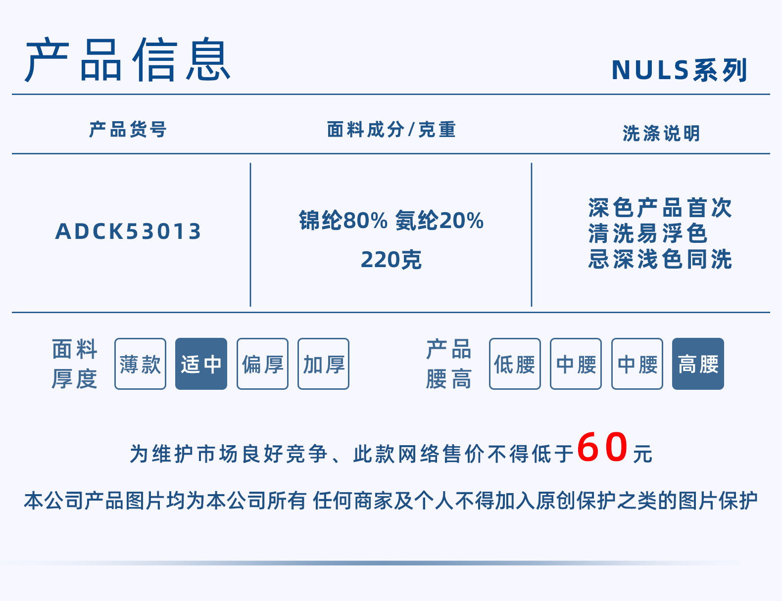 ![]() | M/6 | Navy blue | 1шт: ¥31.90, 200шт: ¥30.90, 500шт: ¥29.90 | 266 | 6095776990398 | |