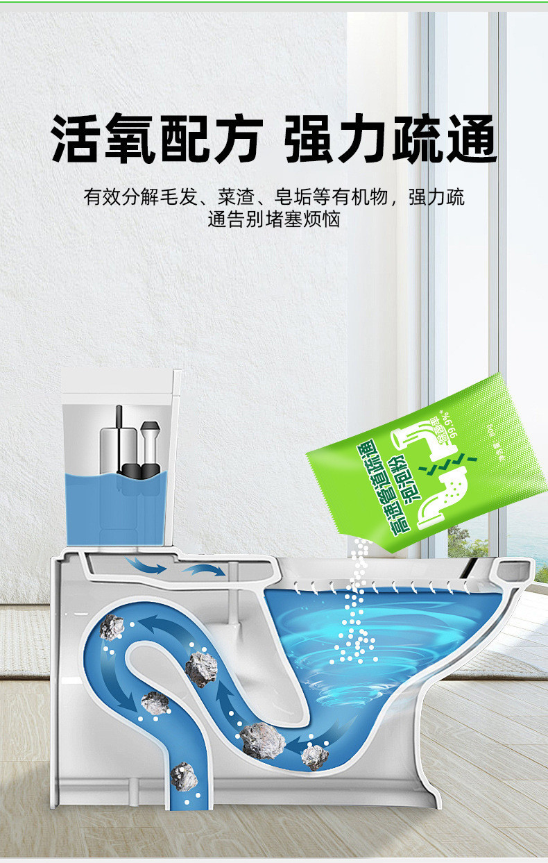 Порошок активного кислорода для быстрого устранения засоров в трубах, для кухни, дренажа пола, туалета, растворяющее дезодорирующее средство
