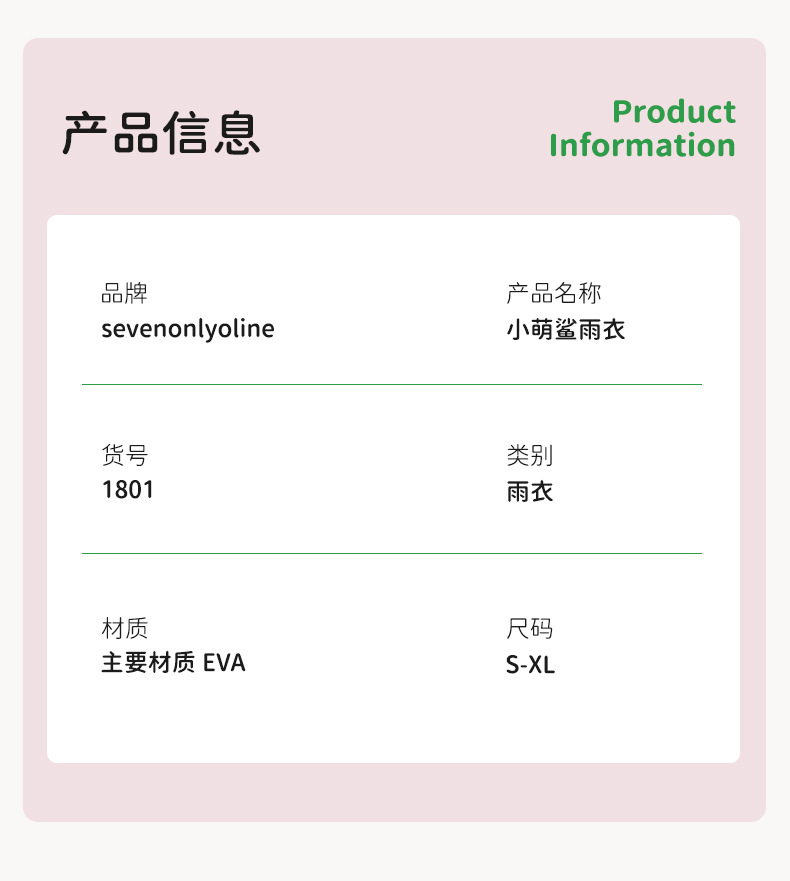 ![]() | Pink [raincoat] | M [suitable for height 100-115] | ¥26.8 / ≈ 324 ₽ | 1193 | 5930700960478 | |