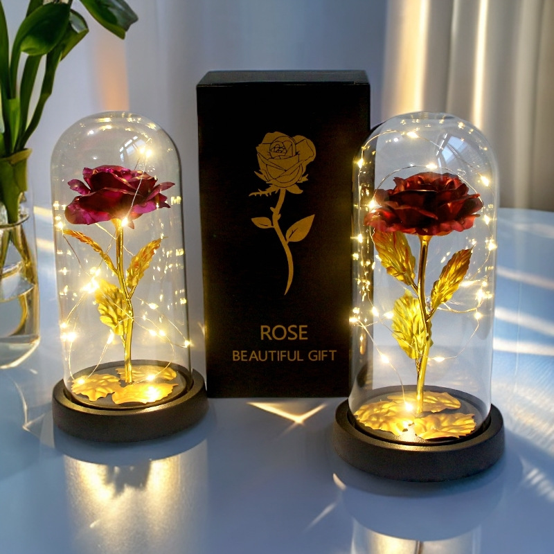 Креативный подарок на День святого Валентина, искусственная роза с золотой фольгой, ночной свет, украшения для дня рождения девушки и китайского Дня святого Валентина