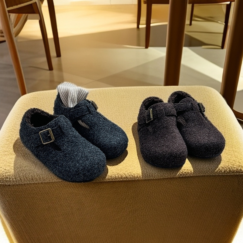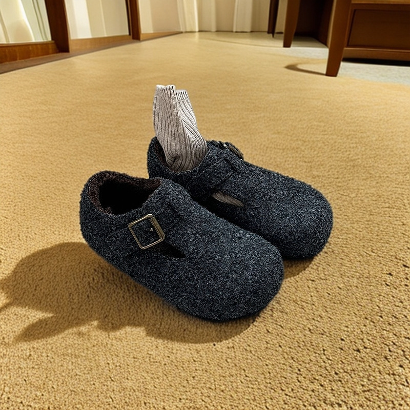 Хлопковые туфли для детей 2025 осень-зима новый стиль теплые флисовые туфли Беркеншток для девочек корейские стильные теплые обувь
