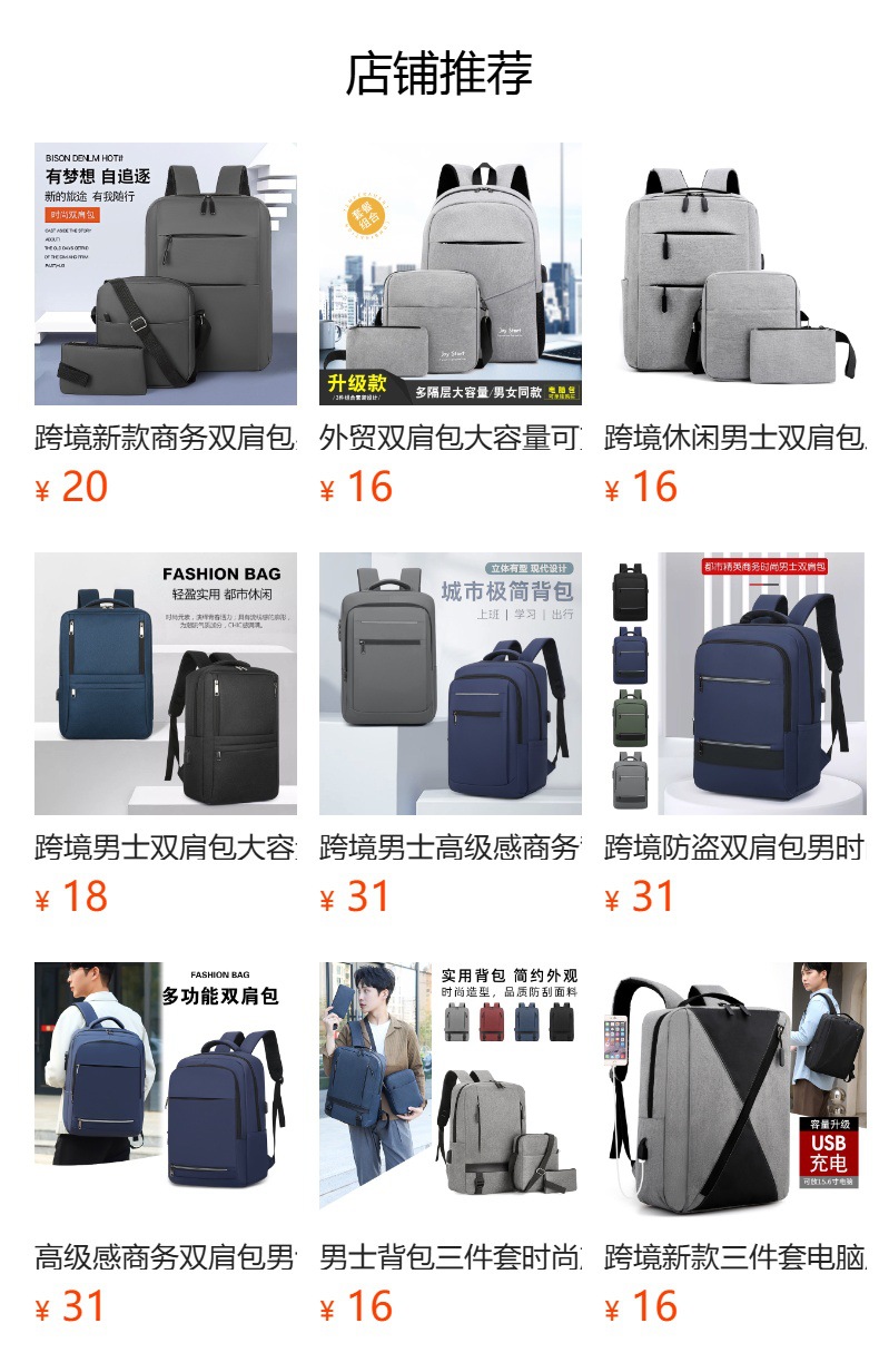 Кросс-бордерная USB сумка для компьютера, трехпредметный комплект, рюкзак, деловая поездка, вместительная сумка для хранения, многофункциональная школьная сумка
