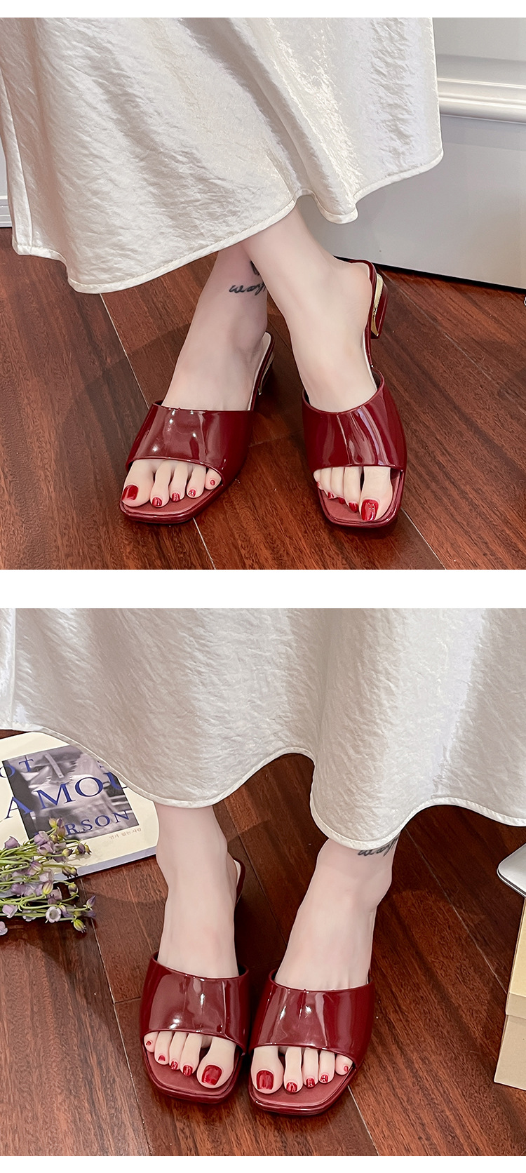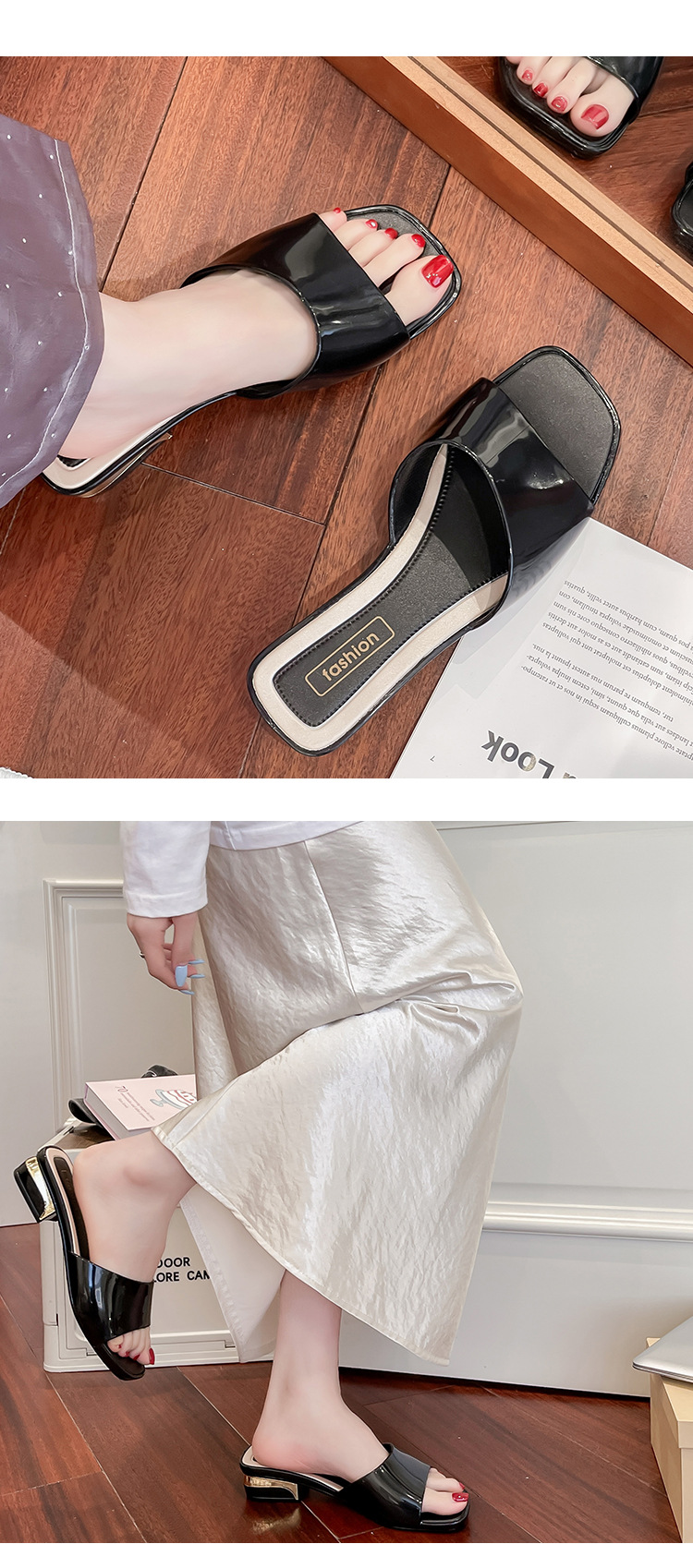 Летние новые сандалии для женщин, толстый каблук, квадратный носок, легкие, нескользящие, модные шлепанцы, универсальные кристаллические шлепанцы