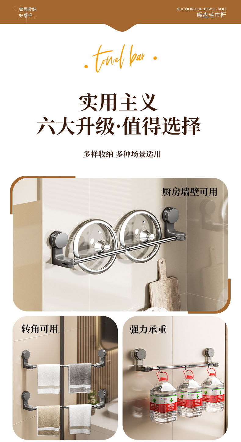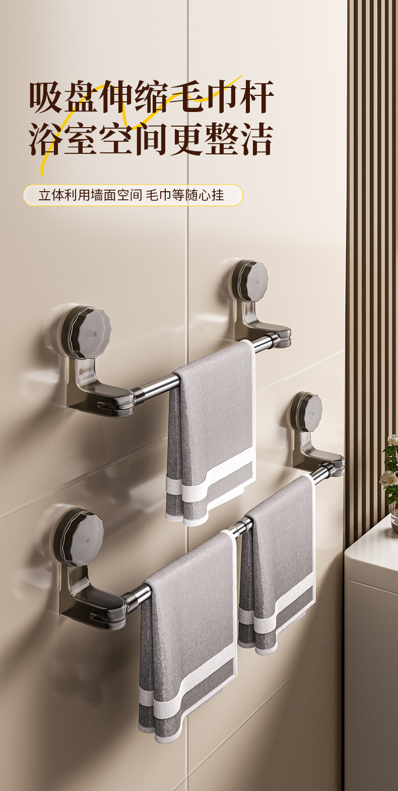 Мощный держатель для полотенец на присосках, выдвижной, для ванной, без сверления