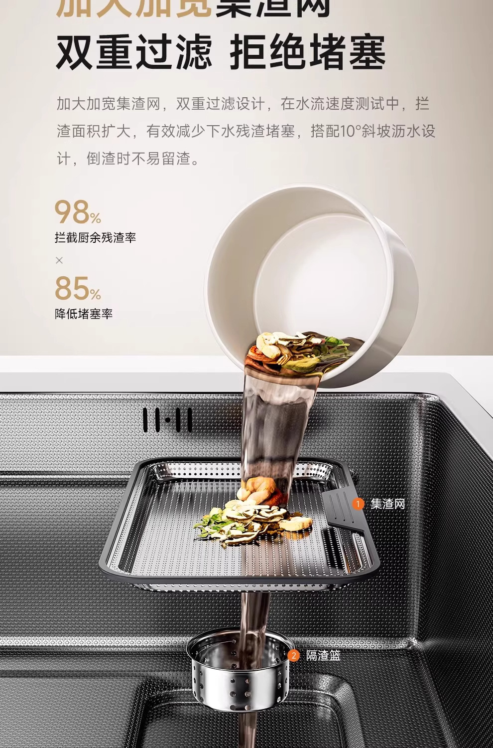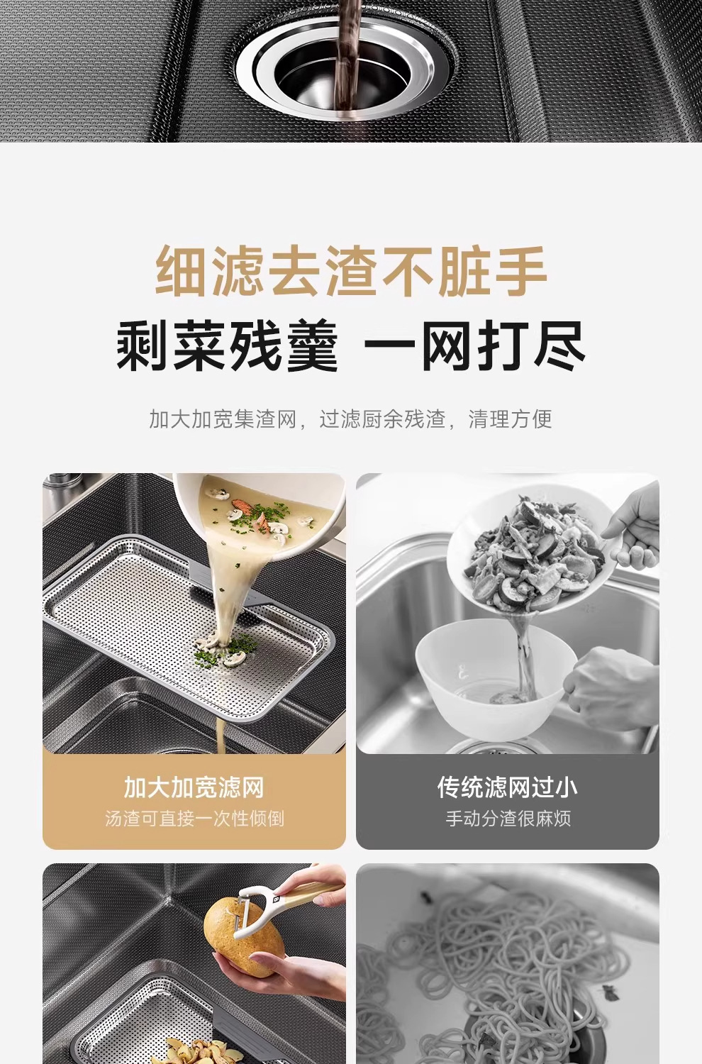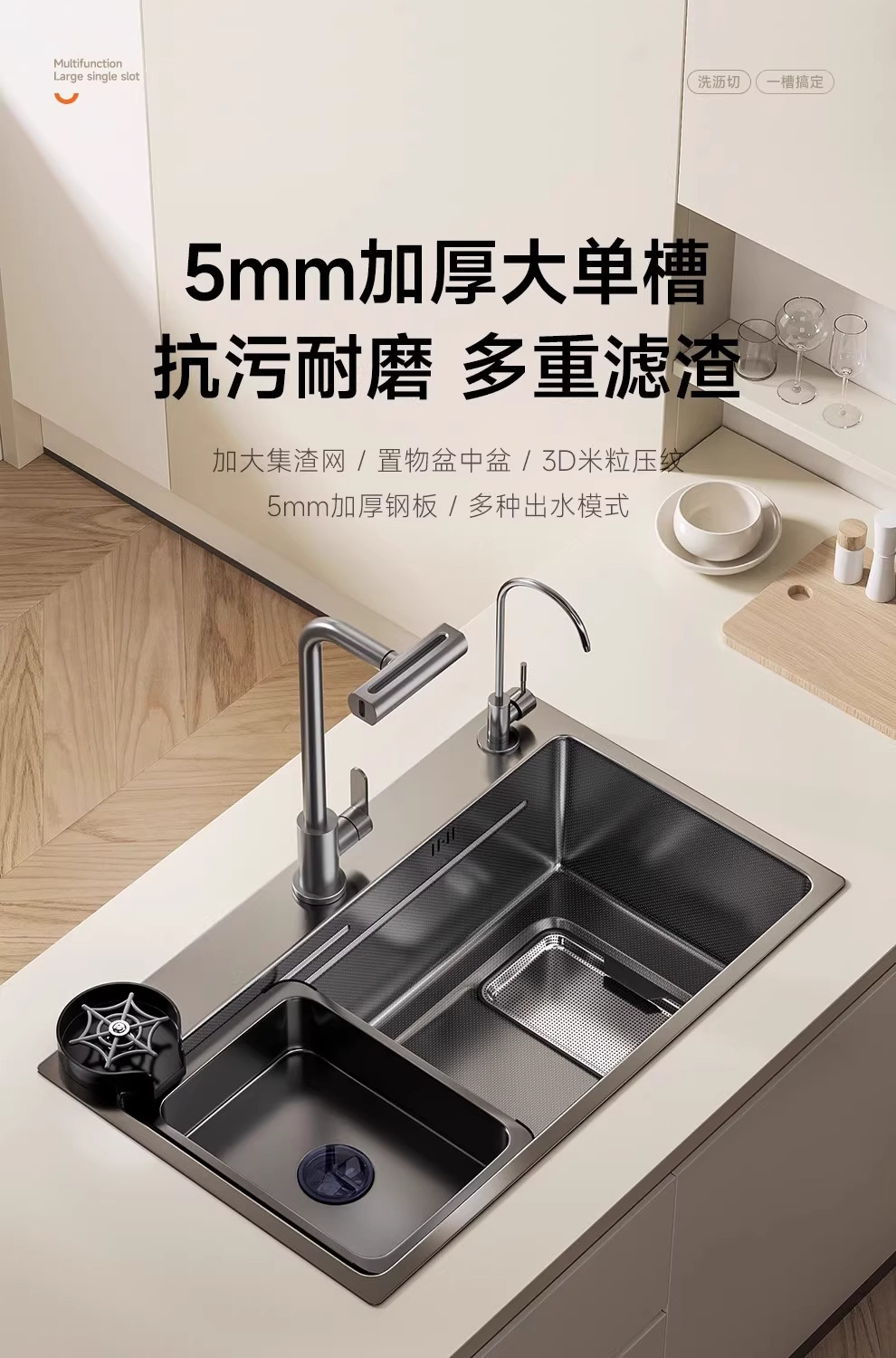 Увеличенная 5.0 Двойная раковина для сбора шлака, большая одинарная раковина, кухонная раковина из нержавеющей стали Sus304 для мытья овощей и посуды