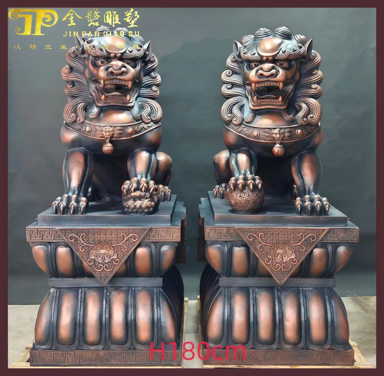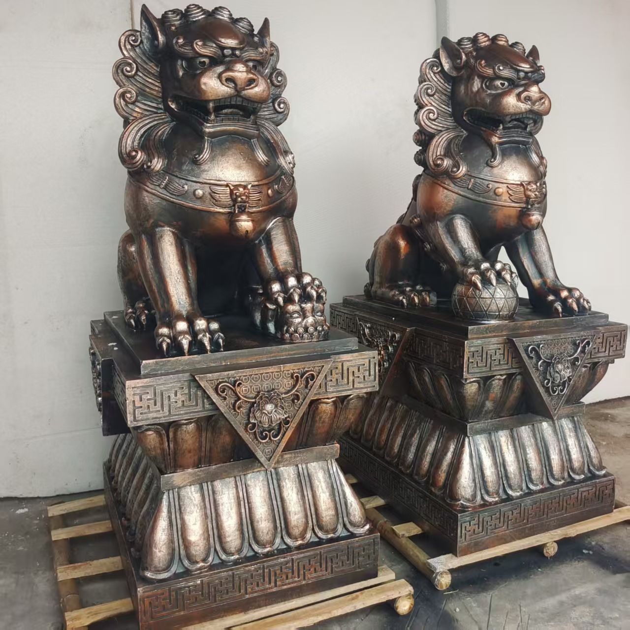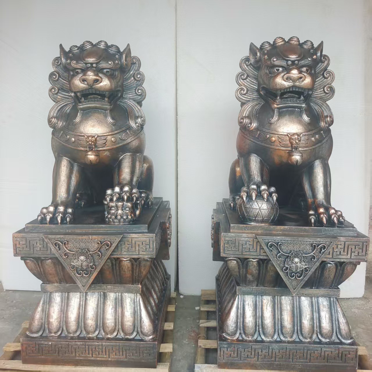Китайские культурные стеклопластиковые имитации бронзовых львов, подарки, антикварные украшения для дверей дворцов