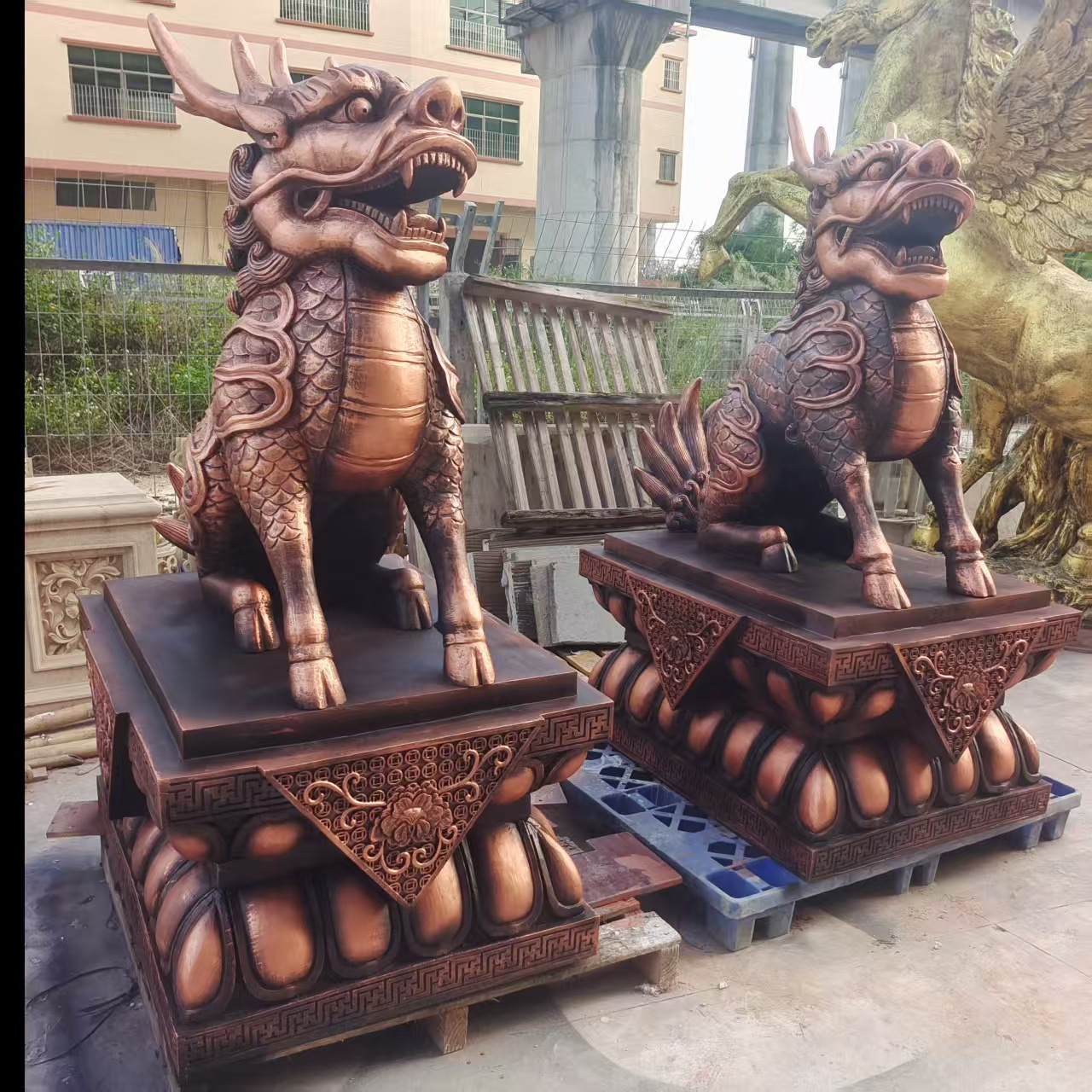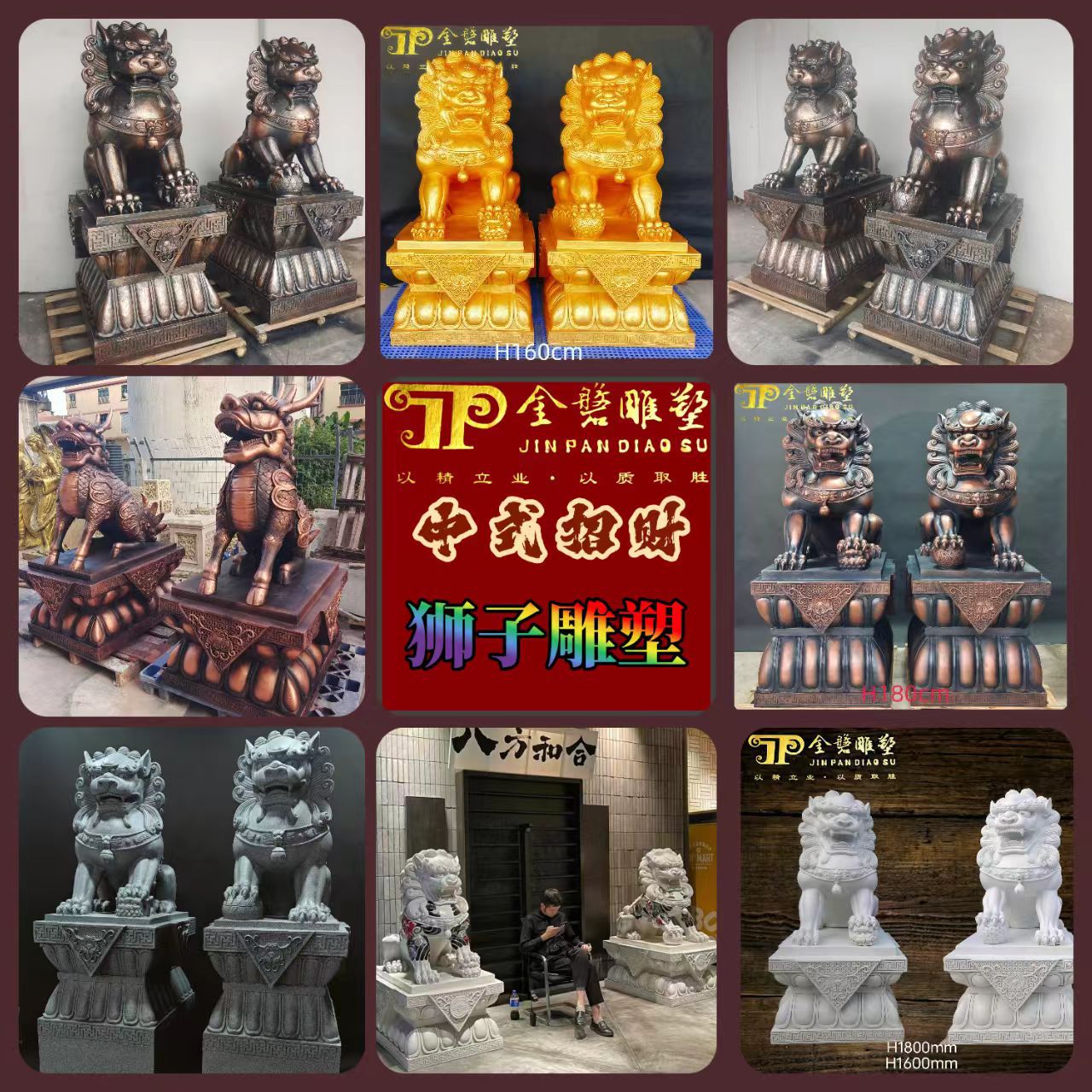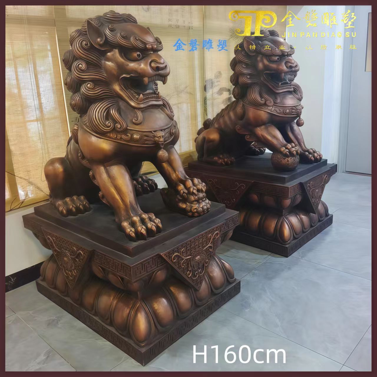 Китайские культурные стеклопластиковые имитации бронзовых львов, подарки, антикварные украшения для дверей дворцов