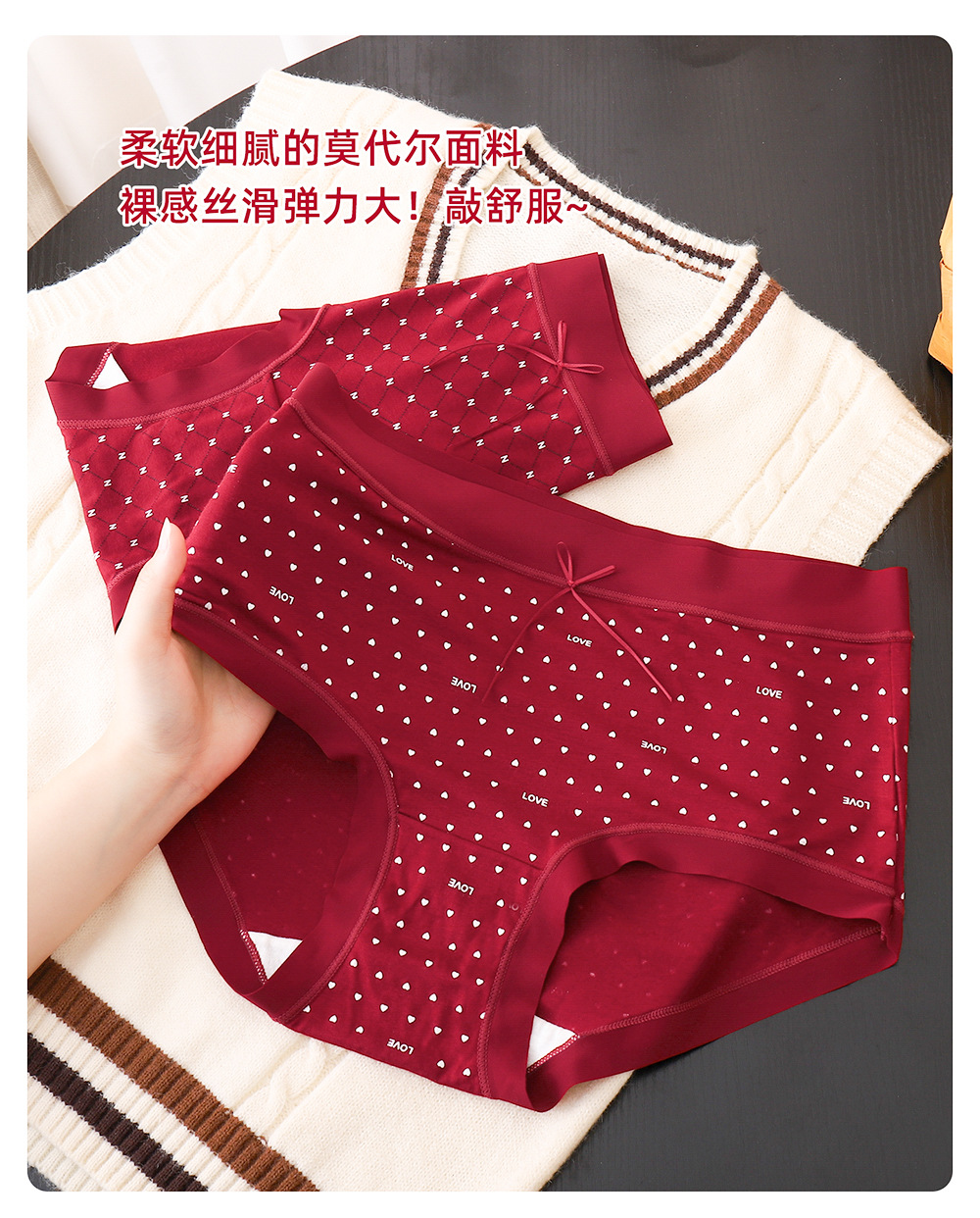 Женское нижнее белье средней талии из модала Анкора красного цвета 7A, антибактериальная ластовица из шелка тутового, на Новый год, свадьба, год зодиака