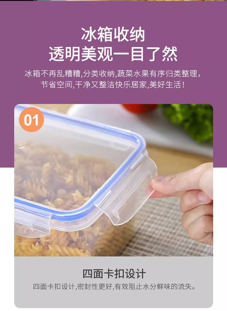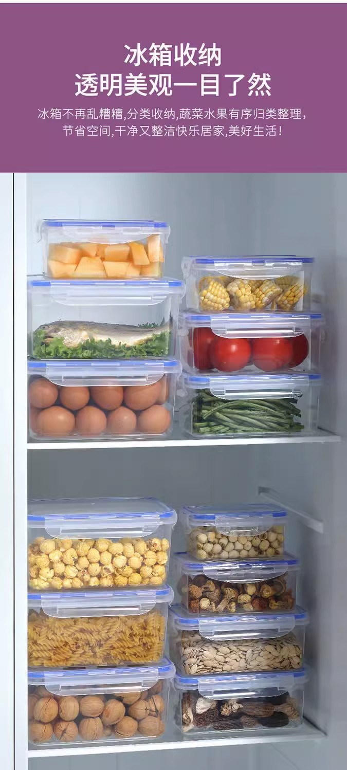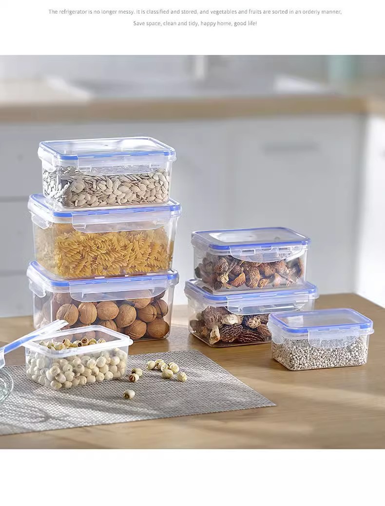 Прямоугольная пластиковая прозрачная коробка для хранения продуктов пищевого класса, герметичная коробка для хранения зерна в холодильнике, кухонная коробка для хранения