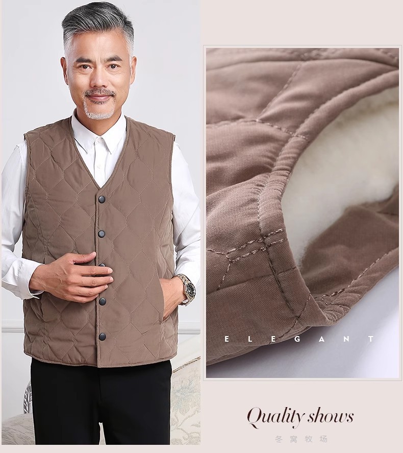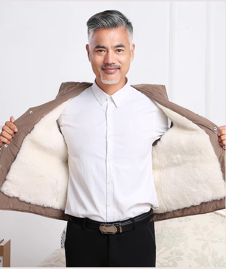 Мужской шерстяной жилет из натуральной кожи осень-зима, жилет из овечьей шерсти, утолщенный, однослойный для людей среднего и пожилого возраста