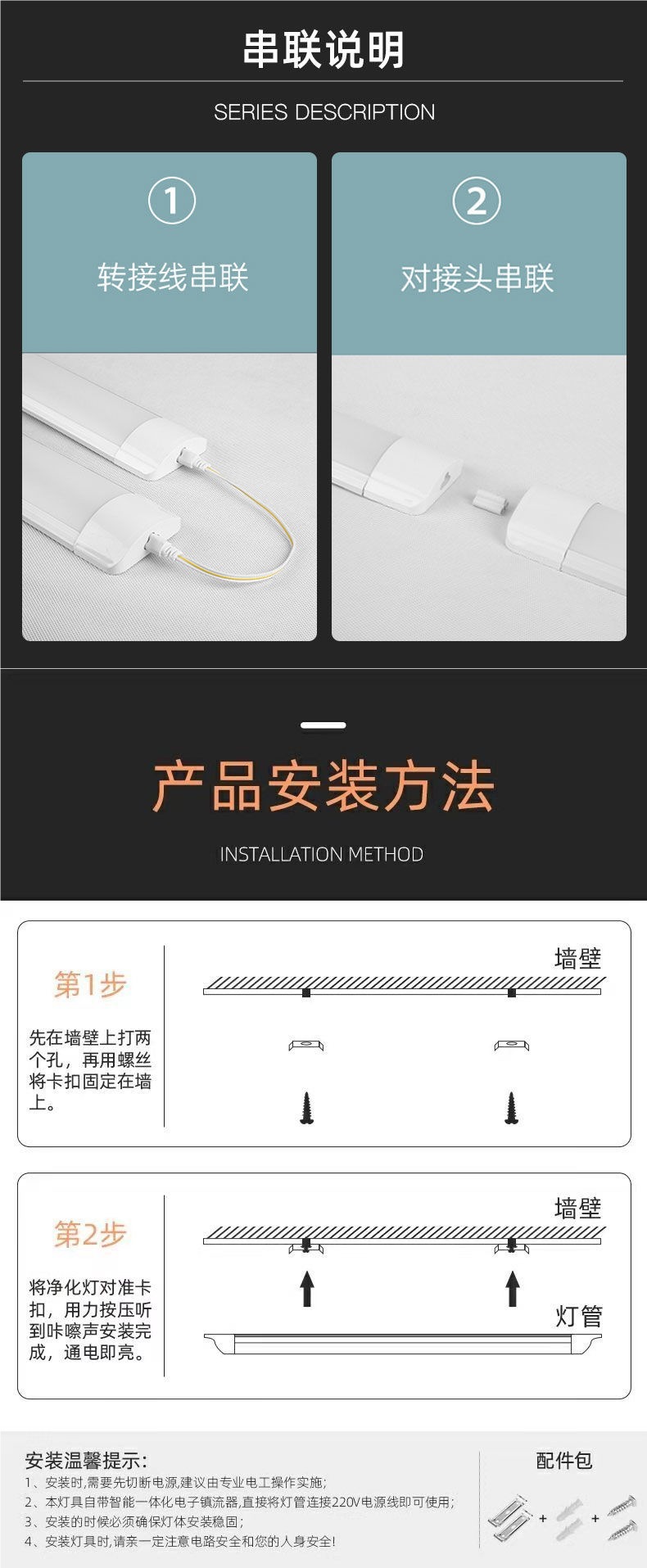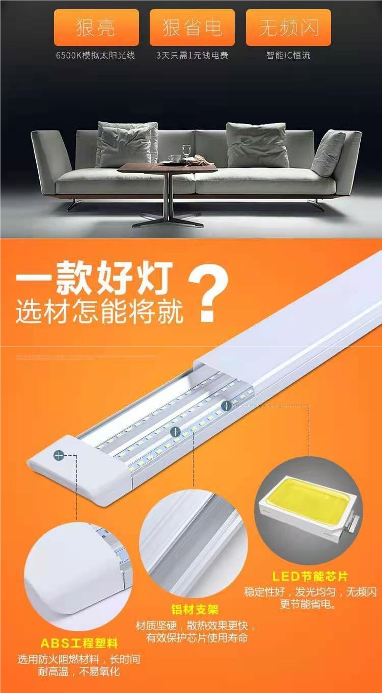 Лампа для очистки с тремя защитами Светодиодная лента Полный комплект флуоресцентных ламп Потолочная лента Офис Супер яркий интегрированный