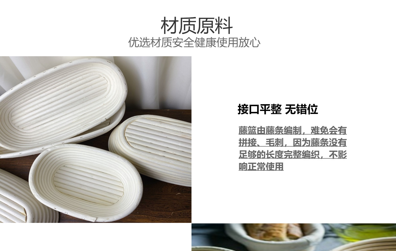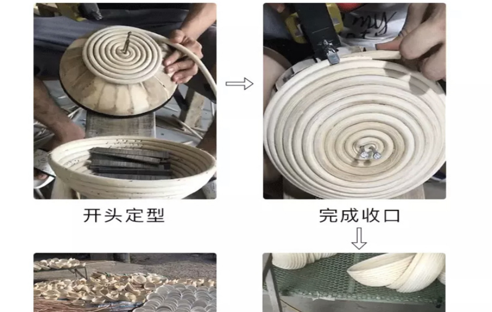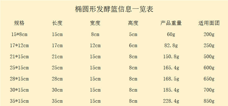 3.尺寸误差0.5-1cm左右,藤篮由藤条在模具上曲折,全过程纯手工编织精度有限。藤条直径也会有轻微不同,多圈叠加以后,盘出来的成品长宽高就会有明显出入,偏差可能会有0.5-1cm左右,对于面团发酵完成后的体积没有肉眼可发现的影响。