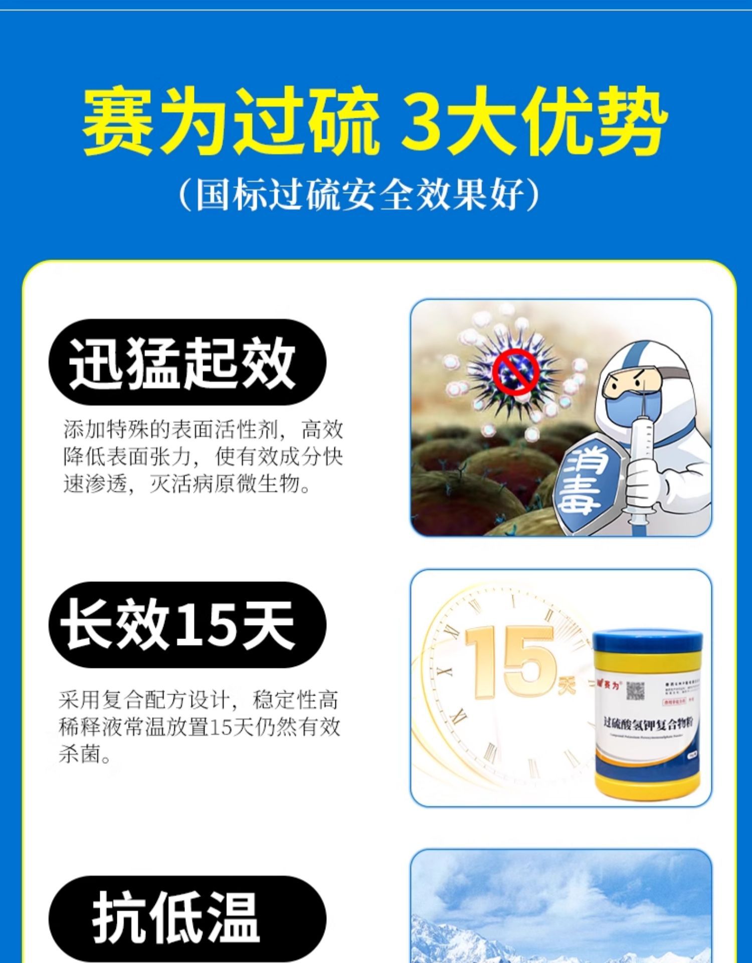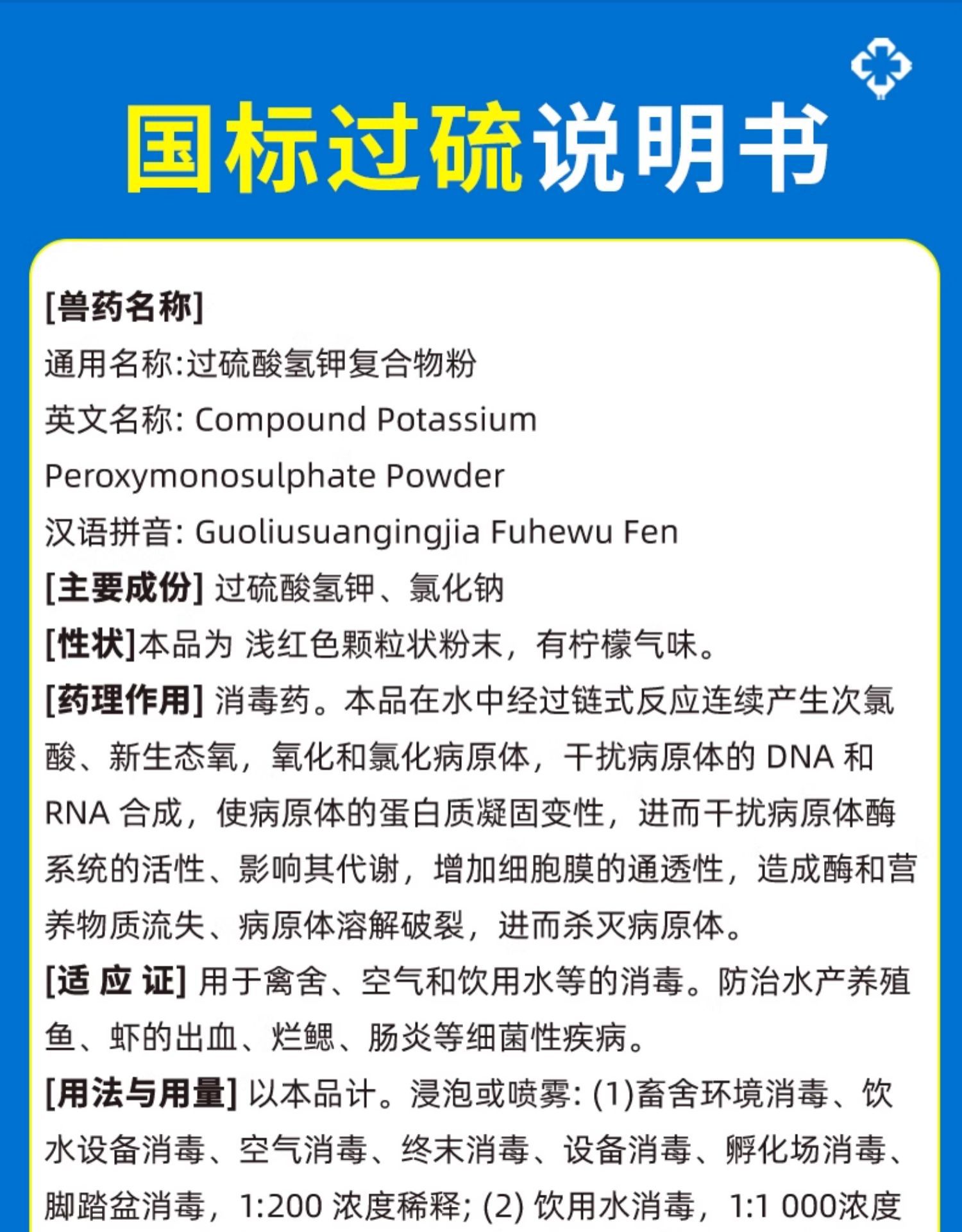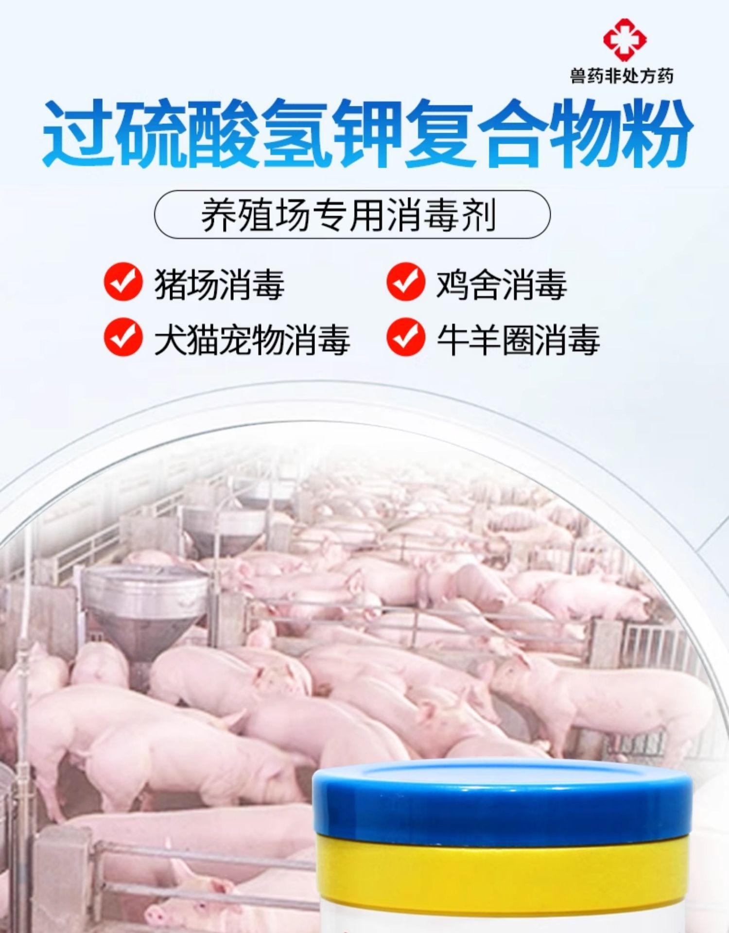 Дезинфицирующее средство на основе персульфата водорода калия, специальный комплексный порошок для дезинфекции ферм, курятников, свиней, коров и овец