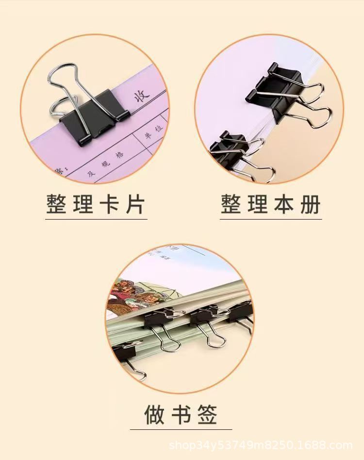 Производитель предлагает зажимы для папок, цветные зажимы для билетов, черные зажимы в форме хвоста, обратные зажимы, оптовая продажа с полными спецификациями