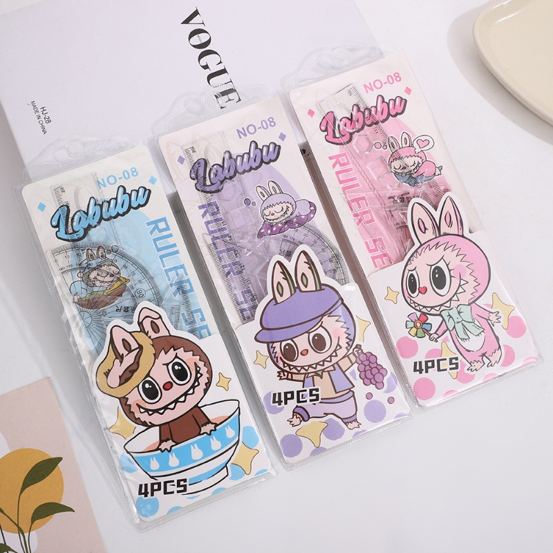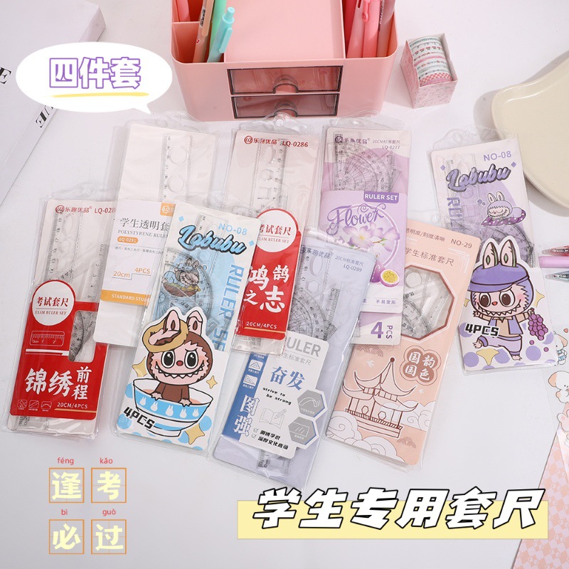 Мультяшный набор линейок, многофункциональная линейка для рисования 20 см, треугольная линейка, транспортир, 4 предмета в наборе, оптовая продажа