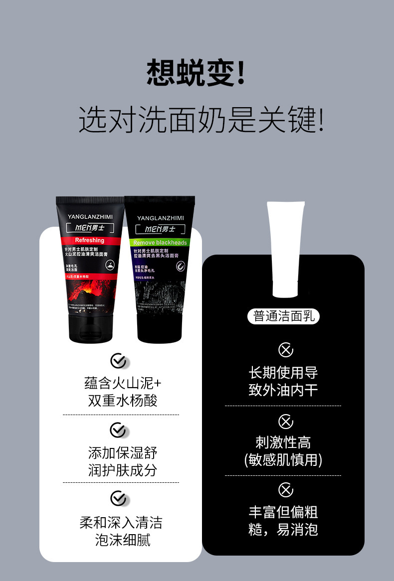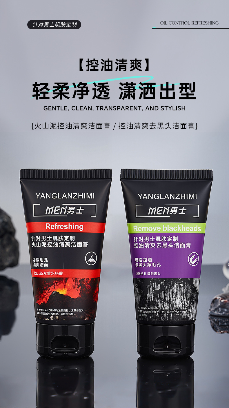 Мужской очищающий гель для лица с вулканической грязью, контроль масла, освежающий крем для очищения, глубокая очистка пор, оптовая продажа