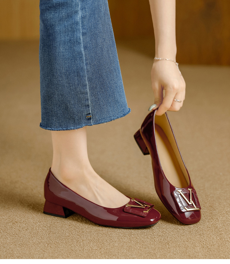 Туфли Lv Buckle 2025 Новые Толстые Каблуки Низкие Женские Обувь Элегантный Квадратный Носок Насколько Мягкие Легкие В Носке Удобные На Все Сезоны