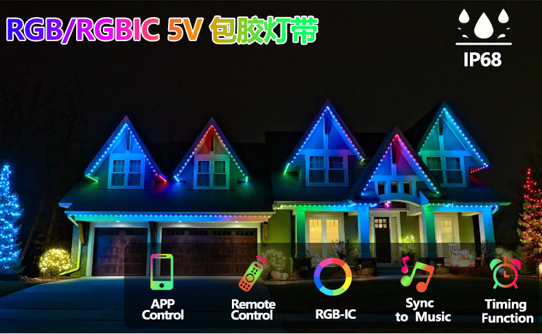 Уличная резиновая USB цветная лента, умная Bluetooth, световая лента для игр, RGBIC, атмосфера для телевизора