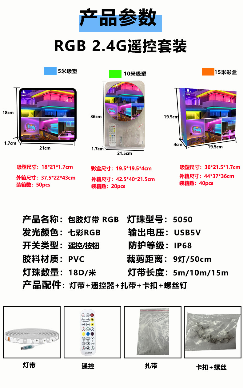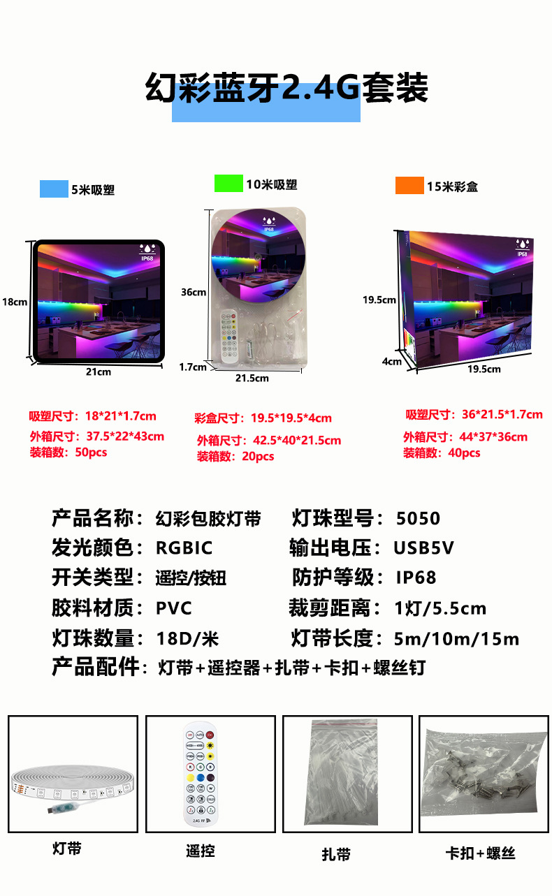 ![]() | 5m usb [rgb colorful package] 2.4g bluetooth-18 lights/meter | ¥23.0 / ≈ 278 ₽ | 100 | 5929652401645 | |