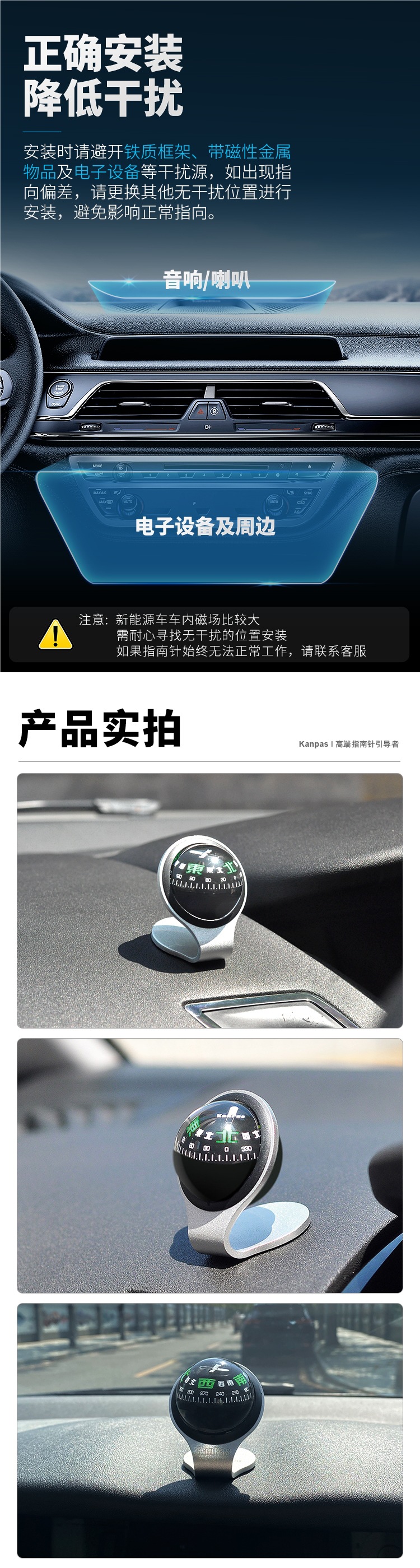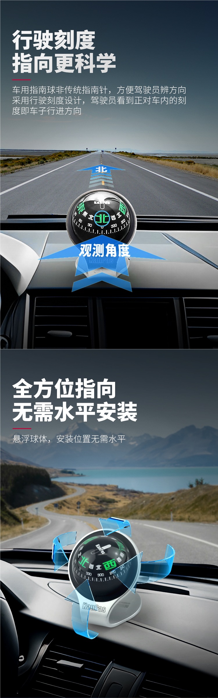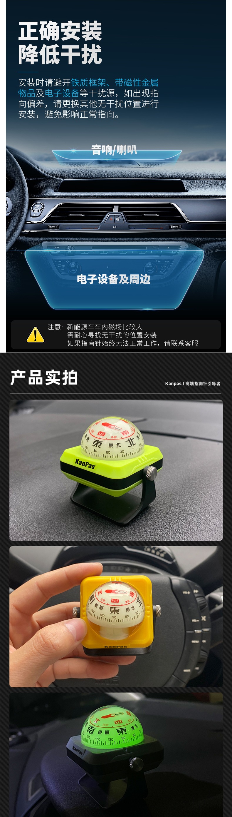 Специальный компас Kanpas, направляющий шар, автомобильные украшения, светящийся компас, высокоточный для автомобилей