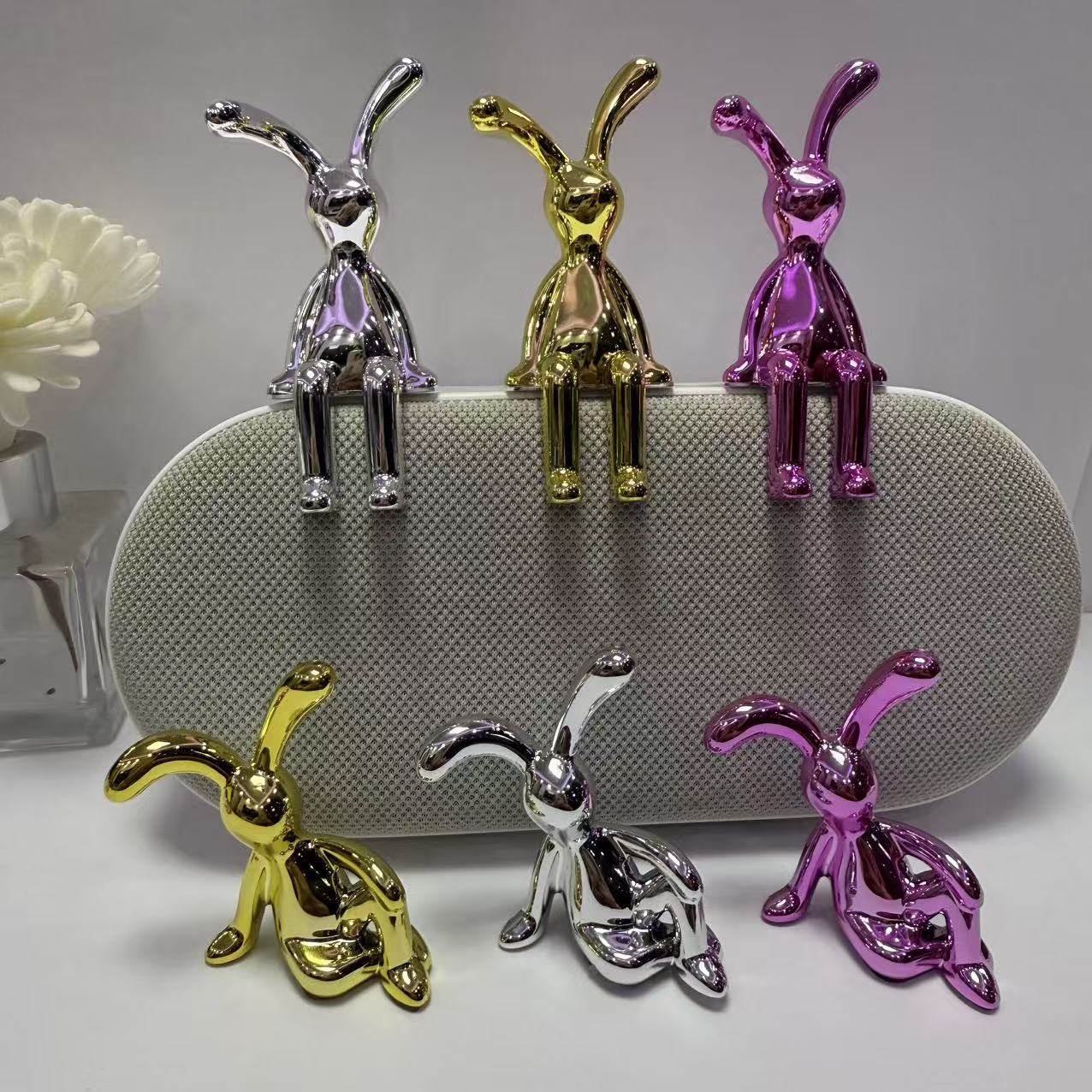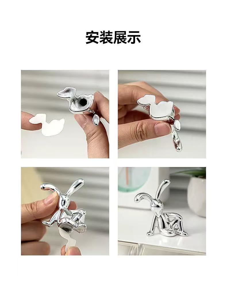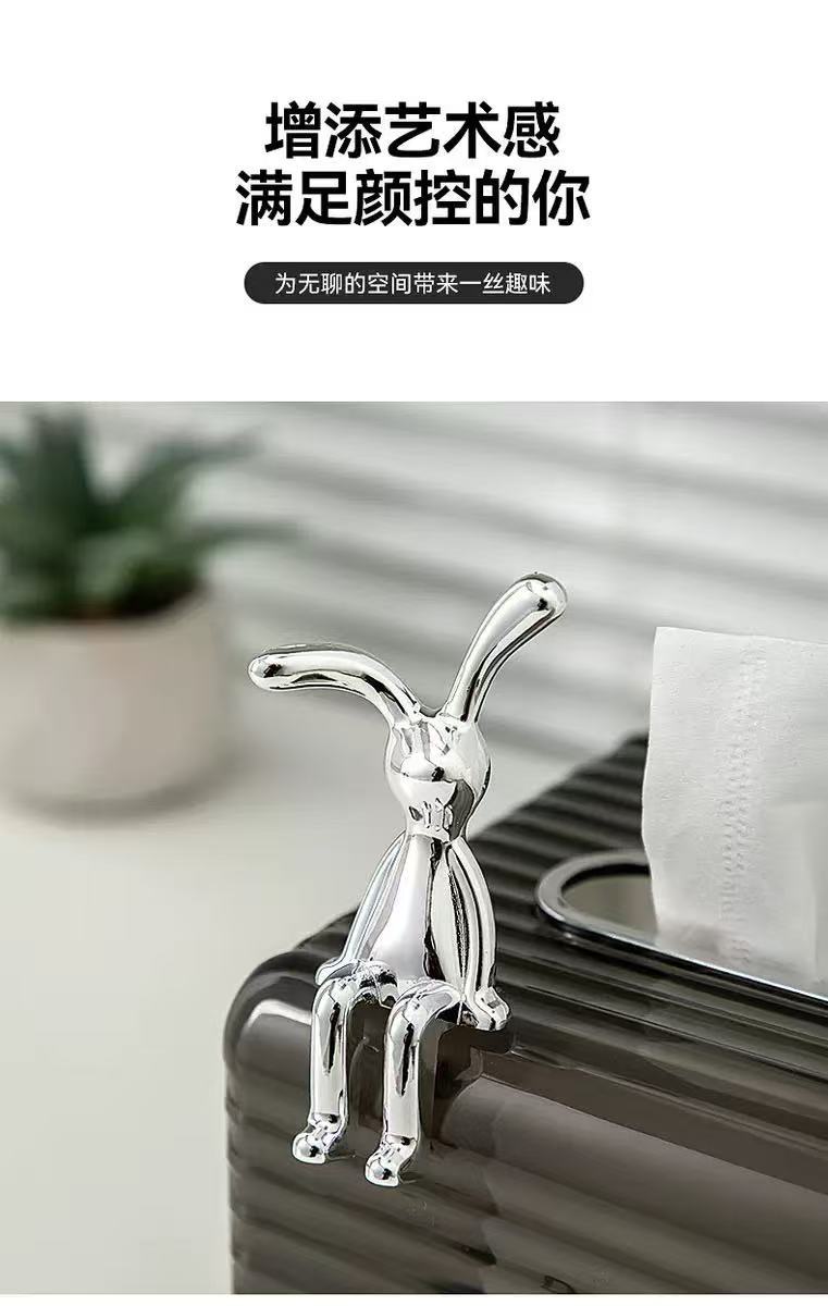 厂家直销跨境热卖创意UV长脚兔子工艺品牙签 筒杯盖把手配件纸巾收纳盒摆件