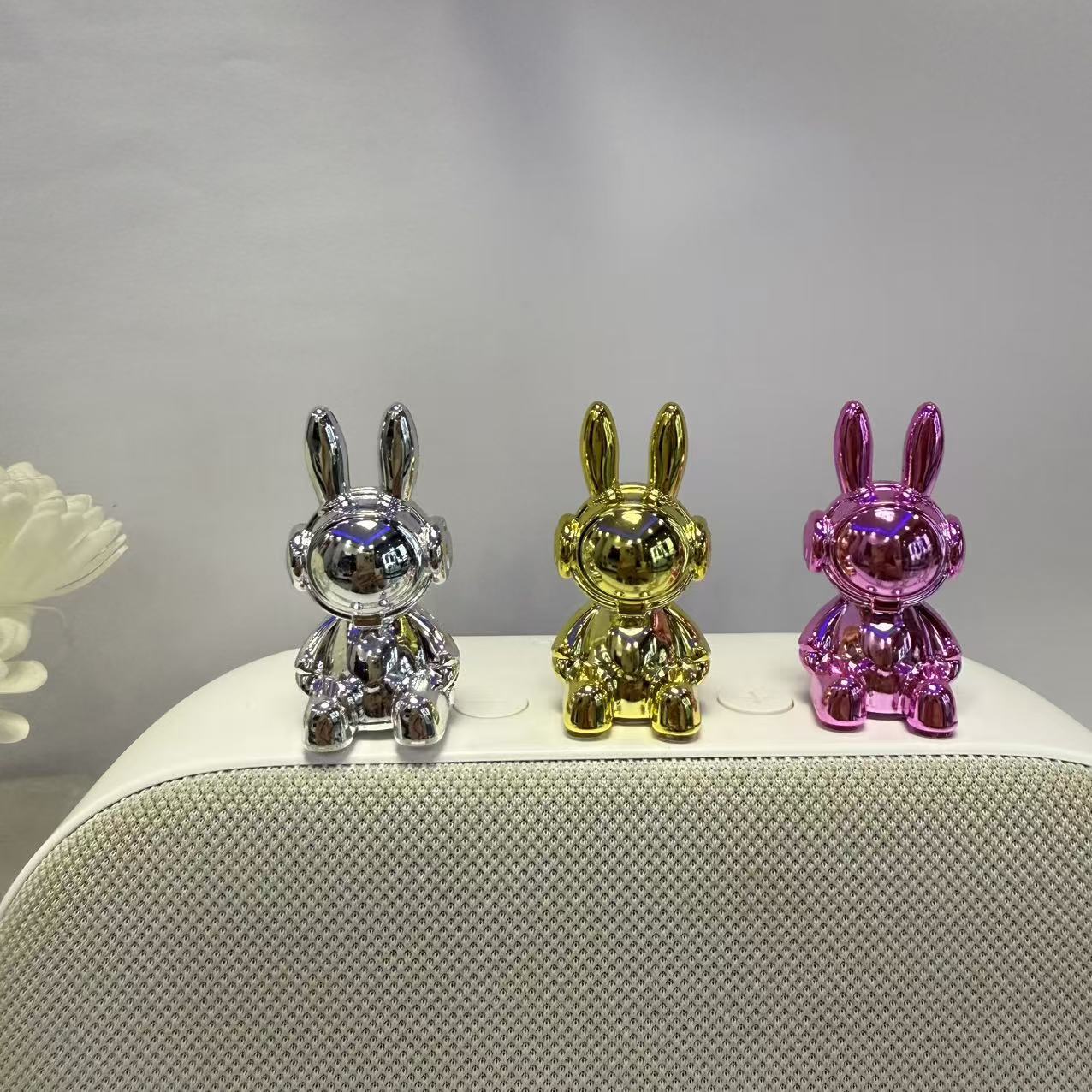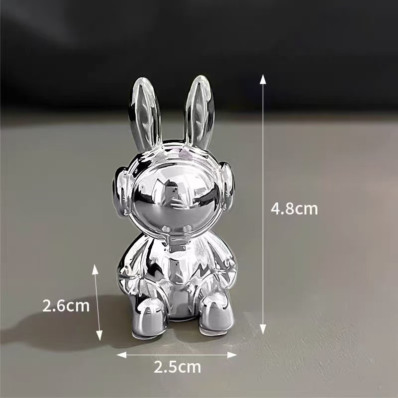 Электроплазменная фигурка космического кролика с медведем Factory direct sales cross-border hot-selling plastic electroplated violent bear space rabbit crafts ornaments toothpick pen holder cover handle accessories tissue box storage car interior decoration ornaments