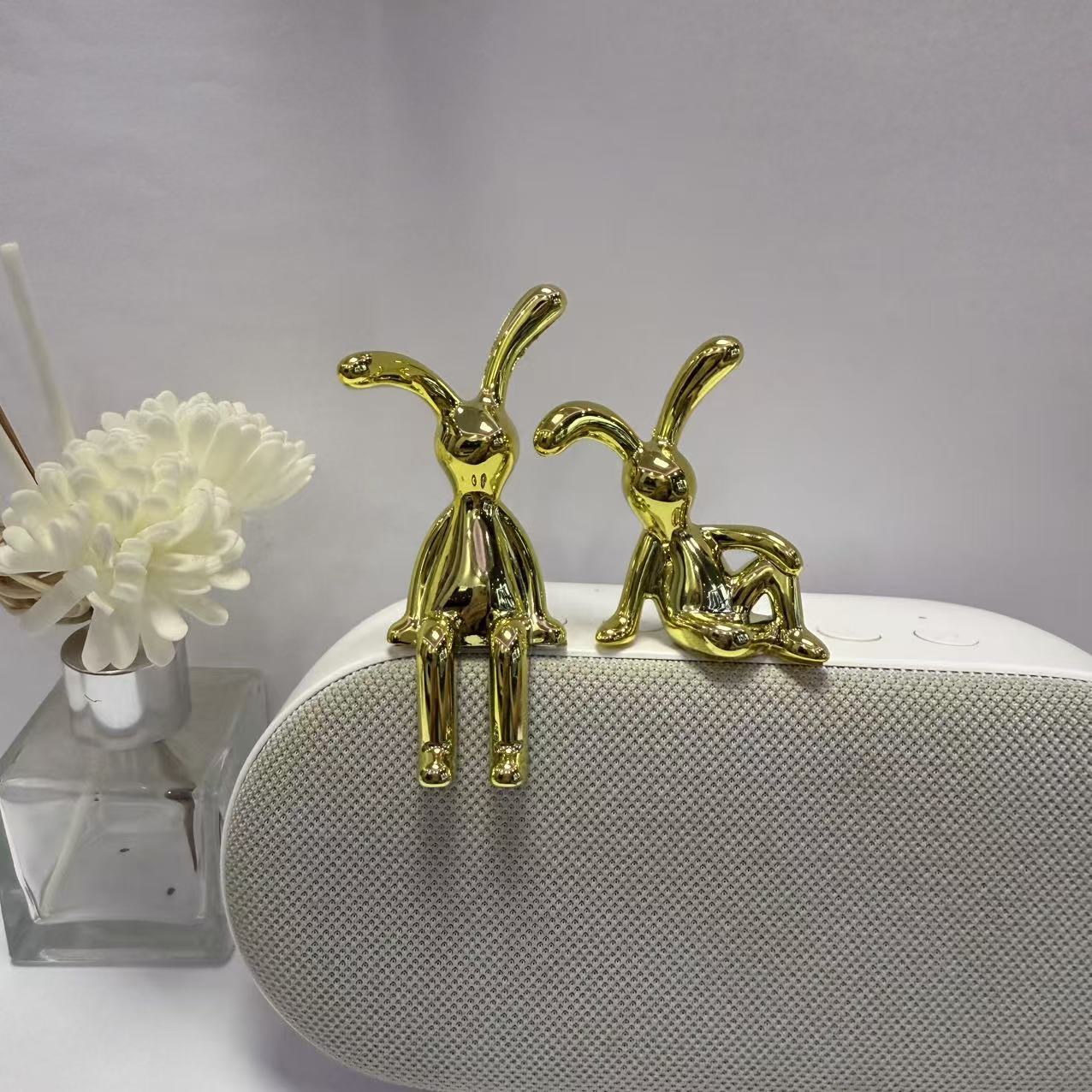 Электроплазменная фигурка кролика лежа Factory direct sales creative accessible luxury home decoration electroplated silver electroplated gold electroplated tv cabinet jewelry box rabbit ornaments