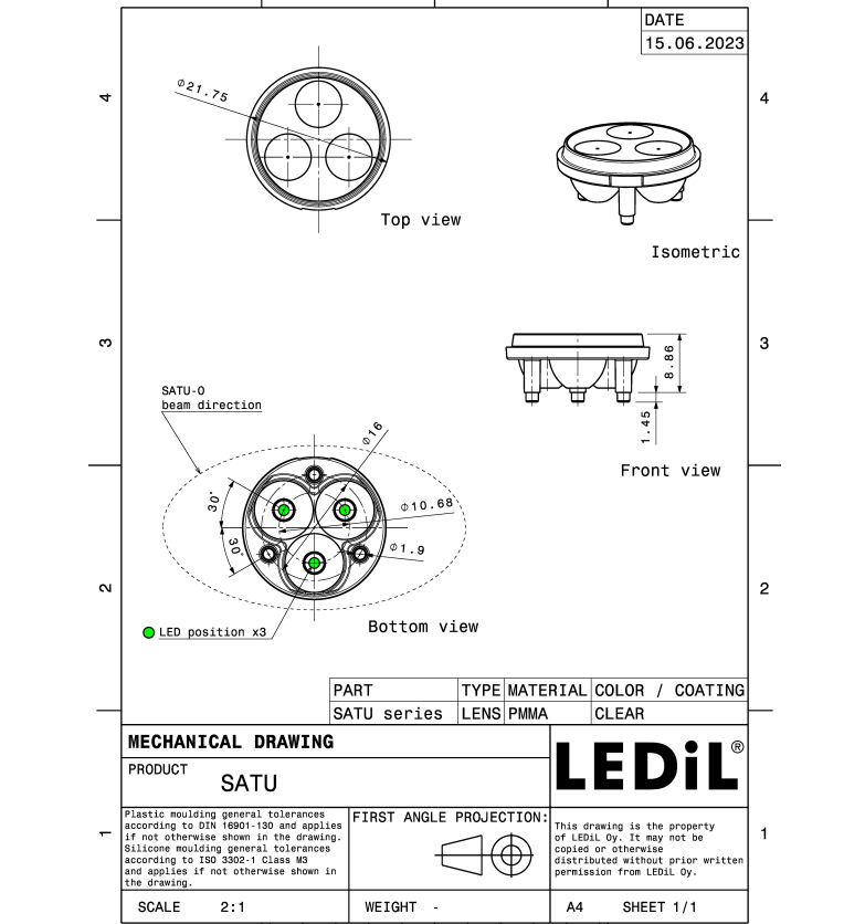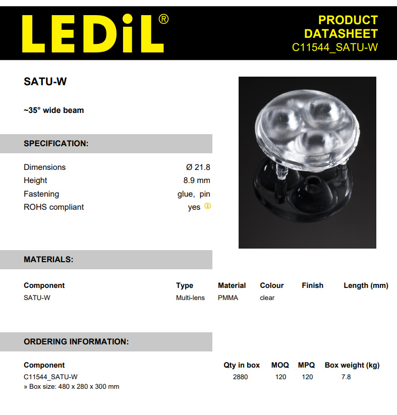 Финская линза Ledil C11544_Satu-W светодиодная линза и сборка 3 в 1